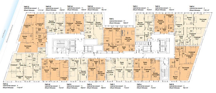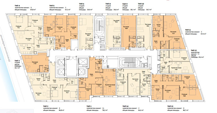 План типового этажа комплекса апартаментов С1.