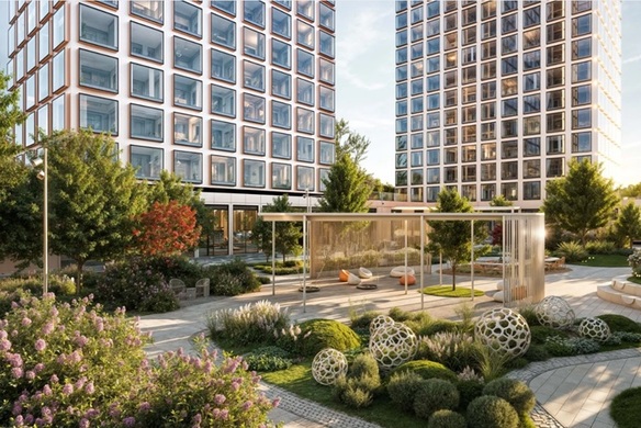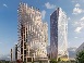 Вытянутые небоскребы постепенно сужаются к верхним этажам, а здания средней этажности, наоборот, постепенно набирают объем. Особое ощущение воздушности задают выступающие балконы.