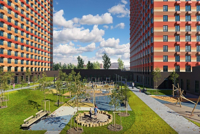 В комплексе будет два паркинга — подземный и наземный, зеленый просторный двор со спортивными и детскими площадками и местами для отдыха. Откроется свой детский сад и школа. Первые этажи отведены под коммерческие помещения.