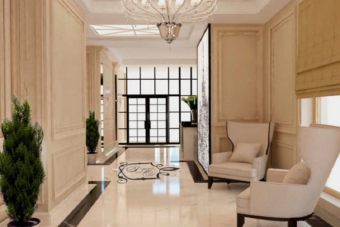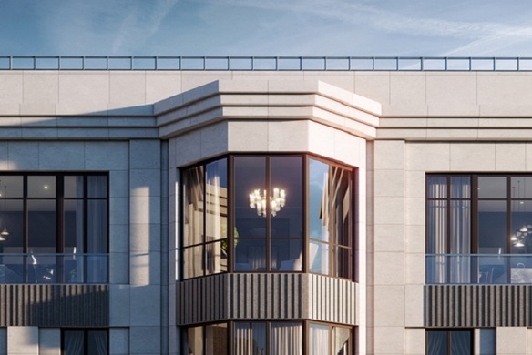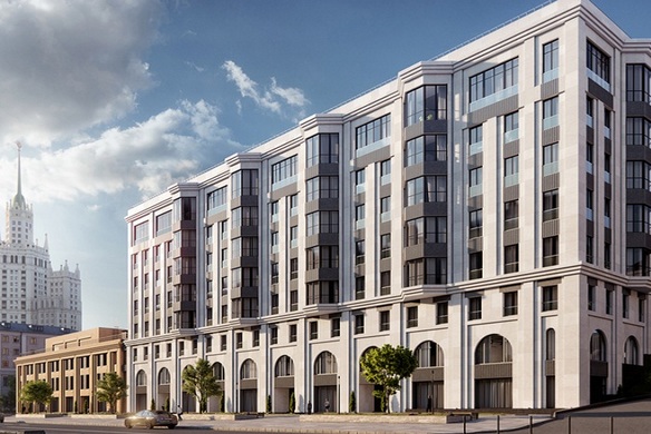На закрытой территории возводится 8-этажное монолитное здание, прекрасно вписывающееся в сложившуюся застройку одного из самых респектабельных районов Москвы: строгий классический стиль, фасады с отделкой из натурального камня, панорамные окна с оригинальным остеклением —из них открываются роскошные виды на Кремль, Москву-реку и парк «Зарядье».