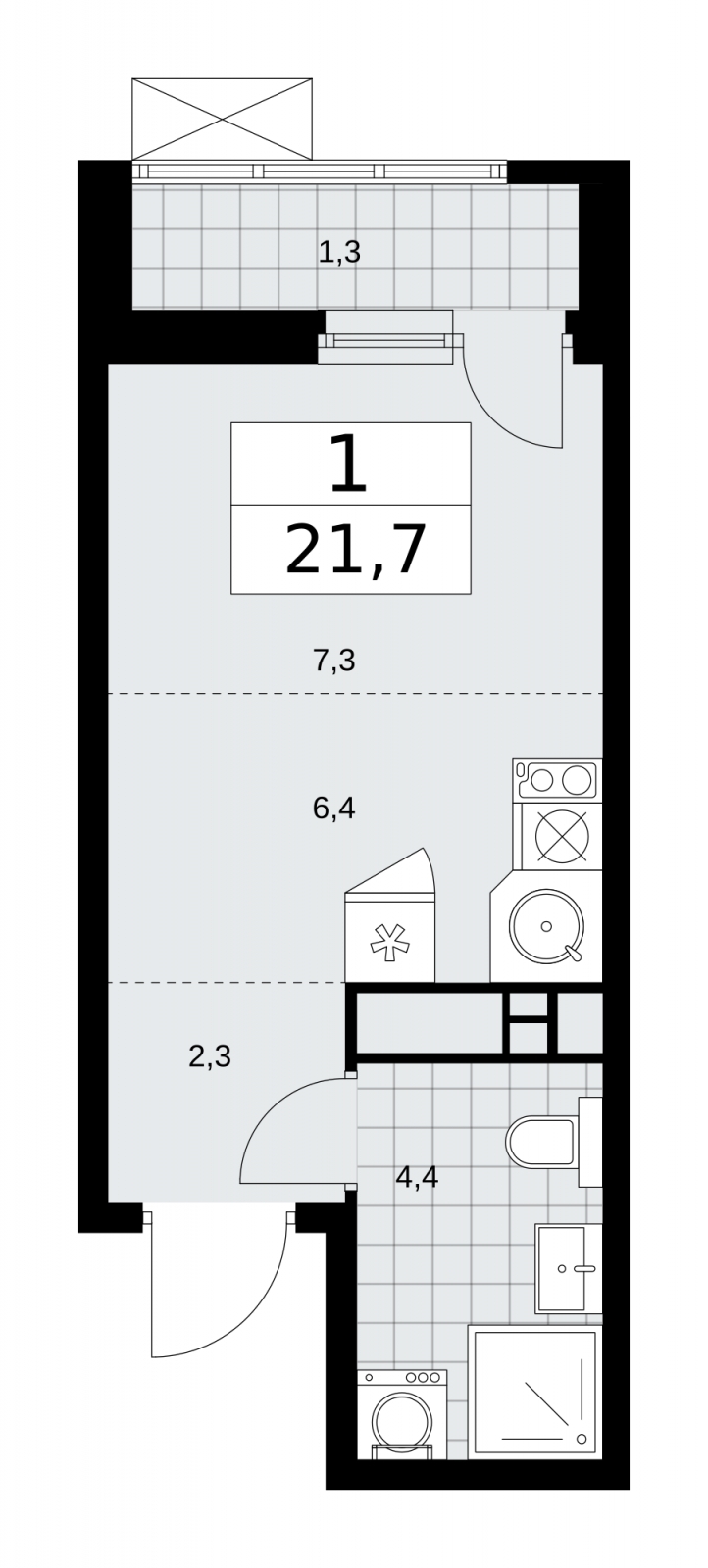 Продается 1-комн. квартира-студия в новом ЖК, у метро Просторная 1-комн. квартира-студия в ЖК "Скандинавия" на 17 этаже. Квартира без отделки, после оформления собственности можно делать ремонт. Общая площадь: 21.7 кв.м., площадь гостиной 13.7 кв.м., из которых 6.4 кв.м. выделено под кухонную зону. Все окна выходят на одну сторону. В квартире один балкон, один совмещенный санузел. Высота потолков 2.95 м. Квартира будет сдана без отделки. Установлены стеклопакеты с повышенной тепло- и шумоизоляцией, установлены элементы отопления, входная дверь, заведены все коммуникации. Квартира находится в корпусе 37.2.1. Дом монолитный, одноподъездный, высотой 18 этажей. На этаже 11 квартир. В подъезде 2 грузовых лифта. Начало строительства - 3 квартал 2023 года. Окончание строительства - 1 квартал 2026 года. Оформление сделки по договору долевого участия. Артикул квартиры по базе застройщика 24К-37.2.1-176. В шаговой доступности от жилого комплекса находятся станции метро (расстояние по прямой): «Потапово» (1.0 км), «Новомосковская» (1.8 км), «Новомосковская (Коммунарка)» (1.9 км). ПРЕДЛОЖЕНИЯ ОТ ЗАСТРОЙЩИКА В ОКТЯБРЕ 2025: Ипотека от 13,9 % для всех! На весь срок. "Семейная ипотека" вернулась. Ставка от 3,5 % на весь срок! Без удорожания! Выгодное ипотечное комбо: Ипотека от 2200 р./мес. и от 6 % после рождения ребёнка! Ипотека для всех "Держи пять!" - ставка 5 % на 2 года! *более подробную информацию по скидкам и акциям уточняйте в отделе продаж ЖК "Скандинавия" - один из проектов компании А101, известной своей надежностью. Жилой комплекс расположен на юго-западе Москвы в 6-ти километрах от МКАД в окружении Бутовского лесопарка, район Коммунарка. Рядом открылись новые станции метро. Часть корпусов микрорайона "Скандинавия" уже заселены, полностью сформирована вся инфраструктура: больницы, детские сады, школы, магазины. Отличительная особенность жилого комплекса - невысокие дома, просторные дворы без машин, комфортная благоустроенная придомовая территория. (AQID02254438)