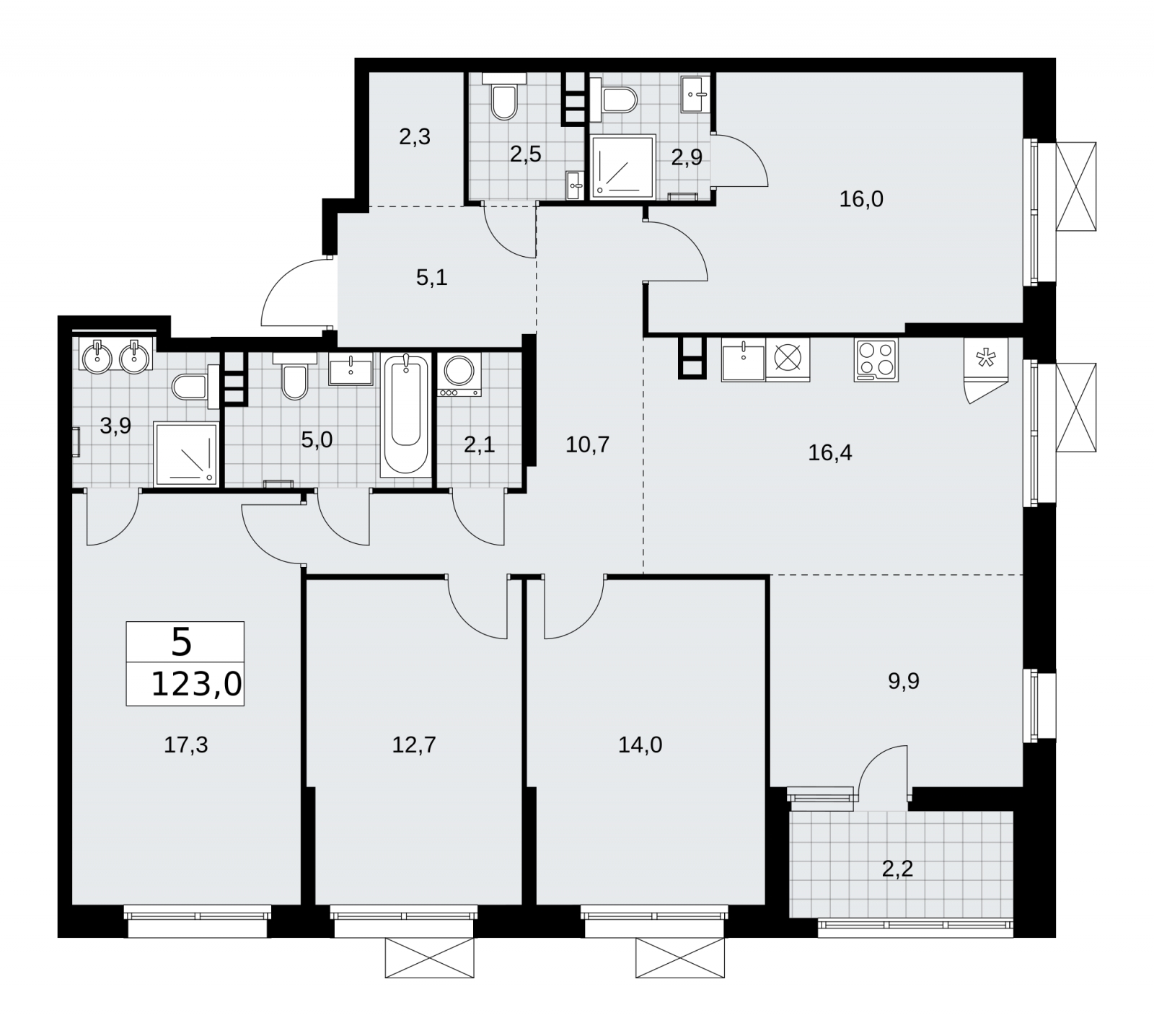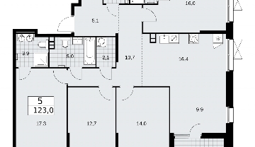 Многокомнатная квартира с европланировкой в новом жилом комплексе, метро рядом Просторная 5-комн. квартира бизнес-класса с европланировкой в ЖК "Скандинавия" на 3 этаже. Квартира без отделки, полностью готова к чистовой отделке и дальнейшему ремонту. Общая площадь: 123 кв.м., жилая: 69.9 кв.м., общая площадь гостиной-столовой с кухонной зоной: 26.3 кв.м. Европланировка, кухня и гостиная объединены в одно просторное помещение. Квартира угловая, очень светлая, естественная вентиляция при открытии окон. В квартире одна лоджия, три совмещенных и один раздельный санузел. Высота потолков 3.1 м. Квартира будет сдана без отделки. Установлены стеклопакеты с повышенной тепло- и шумоизоляцией, установлены элементы отопления, входная дверь, заведены все коммуникации. Имеется ниша под гардероб. Квартира находится в корпусе 2.25.7. Дом монолитный, одноподъездный, высотой 17 этажей. На этаже 4 квартиры. В подъезде 1 пассажирский и 1 грузовой лифт. Начало строительства - 4 квартал 2023 года. Окончание строительства - 2 квартал 2026 года. Оформление сделки по договору долевого участия. Артикул квартиры по базе застройщика 24К-25.7-1035. В шаговой доступности от жилого комплекса имеются станции метро (расстояние по прямой): «Потапово» (1.0 км), «Новомосковская» (1.8 км), «Новомосковская (Коммунарка)» (1.9 км). ПРЕДЛОЖЕНИЯ ОТ ЗАСТРОЙЩИКА В ОКТЯБРЕ 2025: Ипотека от 13,9 % для всех! На весь срок. "Семейная ипотека" вернулась. Ставка от 3,5 % на весь срок! Без удорожания! Выгодное ипотечное комбо: Ипотека от 2200 р./мес. и от 6 % после рождения ребёнка! Ипотека для всех "Держи пять!" - ставка 5 % на 2 года! *более подробную информацию по скидкам и акциям уточняйте в отделе продаж ЖК "Скандинавия" - один из проектов компании А101, известной своей надежностью. Жилой комплекс расположен на юго-западе Москвы в 6-ти километрах от МКАД в окружении Бутовского лесопарка, район Коммунарка. Рядом открылись новые станции метро. Часть корпусов микрорайона "Скандинавия" уже заселены, полностью сформирована вся инфраструктура: больницы, детские сады, школы, магазины. Отличительная особенность жилого комплекса - невысокие дома, просторные дворы без машин, комфортная благоустроенная придомовая территория. (AQID02284342)