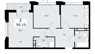 Двухкомнатная квартира с отделкой в новостройке, метро рядом Двухкомнатная квартира бизнес-класса от застройщика с предчистовой отделкой в ЖК "Скандинавия" на 9 этаже. Общая площадь: 56.1 кв.м., жилая: 27.9 кв.м., площадь просторной кухни-столовой: 11.4 кв.м. Угловая квартира, идеально подойдет любителям тишины и панорамных видов. В квартире одна лоджия, два совмещенных санузла. Высота потолков 3.1 м. В квартире будет выполнена отделка WHITE BOX. На полу стяжка, стены выровнены и отшпаклеваны, проложены все электрокабели с подрозетниками и выключателями, готовы выводы под установку сантехники. Дом монолитный, черырехподъездный, переменной этажности, от 9 до 14 этажей. Квартира находится в 4-й секции высотой 9 этажей в корпусе бизнес-класса 28.4. На этаже 6 квартир. В подъезде 1 пассажирский и 1 грузовой лифт. Начало строительства - 2 квартал 2023 года. Окончание строительства - 1 квартал 2026 года. Оформление сделки по договору долевого участия. Артикул квартиры по базе застройщика 24К-28.4-797. В шаговой доступности от жилого комплекса расположены станции метро (расстояние по прямой): «Потапово» (1.0 км), «Новомосковская» (1.8 км), «Новомосковская (Коммунарка)» (1.9 км). ПРЕДЛОЖЕНИЯ ОТ ЗАСТРОЙЩИКА В ОКТЯБРЕ 2025: Ипотека от 13,9 % для всех! На весь срок. "Семейная ипотека" вернулась. Ставка от 3,5 % на весь срок! Без удорожания! Выгодное ипотечное комбо: Ипотека от 2200 р./мес. и от 6 % после рождения ребёнка! Ипотека для всех "Держи пять!" - ставка 5 % на 2 года! *более подробную информацию по скидкам и акциям уточняйте в отделе продаж ЖК Скандинавия — жилой квартал в Новой Москве от ГК «А101». ЖК Скандинавия включает 19 монолитных жилых домов разной этажности (7-16 этажей). Жилой комплекс расположен в 6,5 км от МКАД в поселке Коммунарка. В пешей доступности находятся школы, детские сады, магазины, кафе, поликлиника, спортивная школа, отделение почты, дом культуры и пр. объекты инфраструктуры. ЖК "Скандинавия" находится в 15-минутной доступности до 3 веток метро. Автомобилисты могут воспользоваться выездом на Калужское шоссе (4,7 км). (AQID02202907)