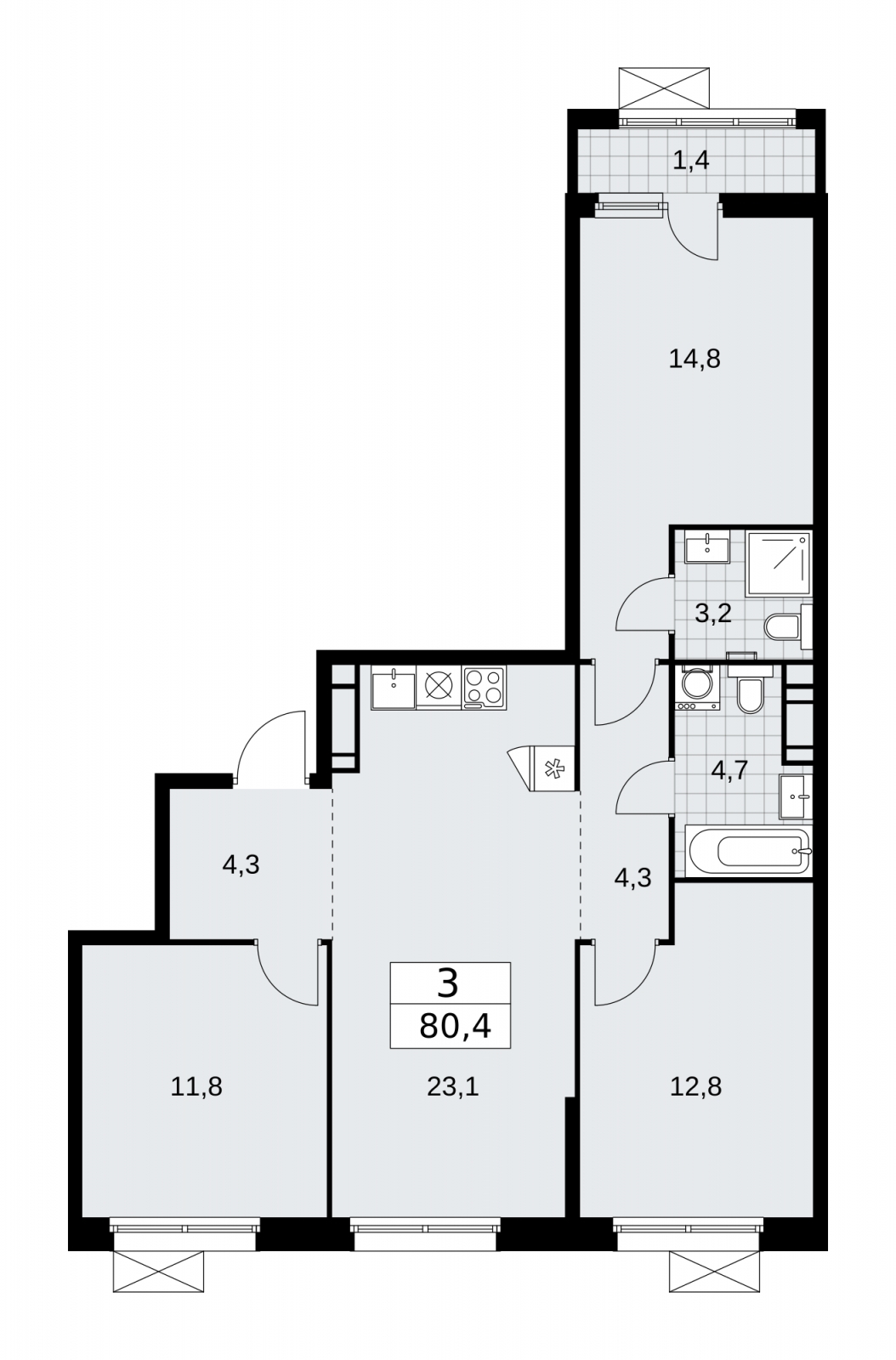 Продается трехкомнатная квартира в новом ЖК, недалеко от метро 3-комн. квартира бизнес-класса в ЖК "Скандинавия" на 14 этаже. Квартира без отделки, новый владелец может сделать ремонт по индивидуальному проекту. Общая площадь: 80.4 кв.м., жилая: 39.4 кв.м., площадь просторной кухни-столовой: 23.1 кв.м. Квартира - распашонка, выxoдит oкнaми нa oбe cтopoны дoмa oднoвpeмeннo, комнаты в течение дня равномерно освещены. В квартире один балкон, два совмещенных санузла. Высота потолков 3.1 м. Квартира будет сдана без отделки. Установлены стеклопакеты с повышенной тепло- и шумоизоляцией, установлены элементы отопления, входная дверь, заведены все коммуникации. Имеется ниша под гардероб. Дом монолитный, трехподъездный, переменной этажности, от 12 до 17 этажей. Квартира находится во 2-й секции высотой 17 этажей в корпусе бизнес-класса 2.25.5. На этаже 5 квартир. В подъезде 1 пассажирский и 1 грузовой лифт. Начало строительства - 4 квартал 2023 года. Окончание строительства - 2 квартал 2026 года. Оформление сделки по договору долевого участия. Артикул квартиры по базе застройщика 24К-25.5-820. В шаговой доступности от жилого комплекса расположены станции метро (расстояние по прямой): «Потапово» (1.0 км), «Новомосковская» (1.8 км), «Новомосковская (Коммунарка)» (1.9 км). ПРЕДЛОЖЕНИЯ ОТ ЗАСТРОЙЩИКА В ОКТЯБРЕ 2025: Ипотека от 13,9 % для всех! На весь срок. "Семейная ипотека" вернулась. Ставка от 3,5 % на весь срок! Без удорожания! Выгодное ипотечное комбо: Ипотека от 2200 р./мес. и от 6 % после рождения ребёнка! Ипотека для всех "Держи пять!" - ставка 5 % на 2 года! *более подробную информацию по скидкам и акциям уточняйте в отделе продаж ЖК Скандинавия — жилой квартал в Новой Москве от ГК «А101». ЖК Скандинавия включает 19 монолитных жилых домов разной этажности (7-16 этажей). Жилой комплекс расположен в 6,5 км от МКАД в поселке Коммунарка. В пешей доступности находятся школы, детские сады, магазины, кафе, поликлиника, спортивная школа, отделение почты, дом культуры и пр. объекты инфраструктуры. ЖК "Скандинавия" находится в 15-минутной доступности до 3 веток метро. Автомобилисты могут воспользоваться выездом на Калужское шоссе (4,7 км). (AQID02283741)