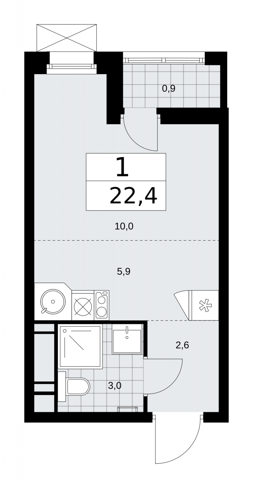 Продается просторная 1-комн. квартира-студия в новом ЖК, метро рядом Продается 1-комн. квартира бизнес-класса-студия от застройщика в ЖК "Скандинавия" на 16 этаже. Квартира без отделки, полностью готова к чистовой отделке и дальнейшему ремонту. Общая площадь: 22.4 кв.м., площадь гостиной 15.9 кв.м., из которых 5.9 кв.м. выделено под кухонную зону. Все окна выходят на одну сторону. В квартире одна лоджия, один совмещенный санузел. Высота потолков 3.1 м. Квартира будет сдана без отделки. Установлены стеклопакеты с повышенной тепло- и шумоизоляцией, установлены элементы отопления, входная дверь, заведены все коммуникации. Дом монолитный, трехподъездный, переменной этажности, от 12 до 17 этажей. Квартира находится во 2-й секции высотой 17 этажей в корпусе бизнес-класса 2.25.5. На этаже 5 квартир. В подъезде 1 пассажирский и 1 грузовой лифт. Начало строительства - 4 квартал 2023 года. Окончание строительства - 2 квартал 2026 года. Оформление сделки по договору долевого участия. Артикул квартиры по базе застройщика 24К-25.5-827. В шаговой доступности от жилого комплекса имеются станции метро (расстояние по прямой): «Потапово» (1.0 км), «Новомосковская» (1.8 км), «Новомосковская (Коммунарка)» (1.9 км). ПРЕДЛОЖЕНИЯ ОТ ЗАСТРОЙЩИКА В ОКТЯБРЕ 2025: Ипотека от 13,9 % для всех! На весь срок. "Семейная ипотека" вернулась. Ставка от 3,5 % на весь срок! Без удорожания! Выгодное ипотечное комбо: Ипотека от 2200 р./мес. и от 6 % после рождения ребёнка! Ипотека для всех "Держи пять!" - ставка 5 % на 2 года! *более подробную информацию по скидкам и акциям уточняйте в отделе продаж ЖК Скандинавия — жилой квартал в Новой Москве от ГК «А101». ЖК Скандинавия включает 19 монолитных жилых домов разной этажности (7-16 этажей). Жилой комплекс расположен в 6,5 км от МКАД в поселке Коммунарка. В пешей доступности находятся школы, детские сады, магазины, кафе, поликлиника, спортивная школа, отделение почты, дом культуры и пр. объекты инфраструктуры. ЖК "Скандинавия" находится в 15-минутной доступности до 3 веток метро. Автомобилисты могут воспользоваться выездом на Калужское шоссе (4,7 км). (AQID02283748)