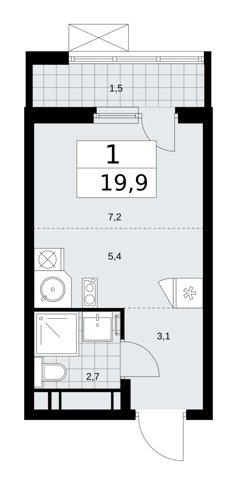 Площадь:19 м2