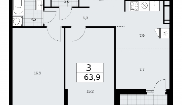 Просторная 3-комнатная квартира с европланировкой в новом жилом комплексе, метро рядом 3-комн. квартира бизнес-класса с европланировкой в ЖК "Скандинавия" на 10 этаже. Квартира без отделки, новый владелец может сделать ремонт по своему проекту. Общая площадь: 63.9 кв.м., жилая: 39.2 кв.м., суммарная площадь гостиной-столовой с кухонной зоной: 15.6 кв.м. Европейская планировка, зона гостиной комнаты объединена с кухней. Комнаты изолированные, все окна выходят на одну сторону. В квартире одна лоджия, один совмещенный и один раздельный санузел. Высота потолков 3.1 м. Квартира будет сдана без отделки. Установлены стеклопакеты с повышенной тепло- и шумоизоляцией, установлены элементы отопления, входная дверь, заведены все коммуникации. Имеется ниша под гардероб. Квартира находится в корпусе 2.25.6. Дом монолитный, одноподъездный, высотой 17 этажей. На этаже 6 квартир. В подъезде 1 пассажирский и 1 грузовой лифт. Начало строительства - 4 квартал 2023 года. Окончание строительства - 2 квартал 2026 года. Оформление сделки по договору долевого участия. Артикул квартиры по базе застройщика 24К-25.6-985. В шаговой доступности от жилого комплекса находятся станции метро (расстояние по прямой): «Потапово» (1.0 км), «Новомосковская» (1.8 км), «Новомосковская (Коммунарка)» (1.9 км). ПРЕДЛОЖЕНИЯ ОТ ЗАСТРОЙЩИКА В ОКТЯБРЕ 2025: Ипотека от 13,9 % для всех! На весь срок. "Семейная ипотека" вернулась. Ставка от 3,5 % на весь срок! Без удорожания! Выгодное ипотечное комбо: Ипотека от 2200 р./мес. и от 6 % после рождения ребёнка! Ипотека для всех "Держи пять!" - ставка 5 % на 2 года! *более подробную информацию по скидкам и акциям уточняйте в отделе продаж ЖК "Скандинавия" - один из проектов компании А101, известной своей надежностью. Жилой комплекс расположен на юго-западе Москвы в 6-ти километрах от МКАД в окружении Бутовского лесопарка, район Коммунарка. Рядом открылись новые станции метро. Часть корпусов микрорайона "Скандинавия" уже заселены, полностью сформирована вся инфраструктура: больницы, детские сады, школы, магазины. Отличительная особенность жилого комплекса - невысокие дома, просторные дворы без машин, комфортная благоустроенная придомовая территория. (AQID02284292)