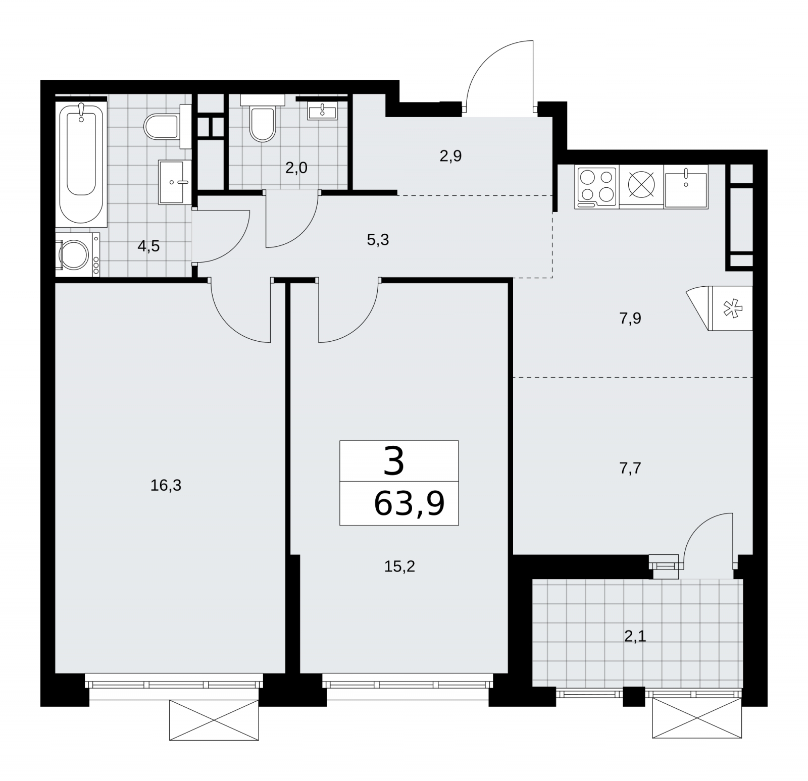Трехкомнатная квартира с европланировкой в новом ЖК, у метро 3-комн. квартира бизнес-класса с европланировкой в ЖК "Скандинавия" на 13 этаже. Квартира без отделки, полностью готова к чистовой отделке и дальнейшему ремонту. Общая площадь: 63.9 кв.м., жилая: 39.2 кв.м., общая площадь гостиной-столовой с кухонной зоной: 15.6 кв.м. Европланировка, площадь комнат позволяет разместить в них все необходимое, а в просторной кухне-гостиной удобно как готовить, так и отдыхать. Комнаты изолированные, все окна выходят на одну сторону. В квартире одна лоджия, один совмещенный и один раздельный санузел. Высота потолков 3.1 м. Квартира будет сдана без отделки. Установлены стеклопакеты с повышенной тепло- и шумоизоляцией, установлены элементы отопления, входная дверь, заведены все коммуникации. Имеется ниша под гардероб. Квартира находится в корпусе 2.25.6. Дом монолитный, одноподъездный, высотой 17 этажей. На этаже 6 квартир. В подъезде 1 пассажирский и 1 грузовой лифт. Начало строительства - 4 квартал 2023 года. Окончание строительства - 2 квартал 2026 года. Оформление сделки по договору долевого участия. Артикул квартиры по базе застройщика 24К-25.6-1003. В шаговой доступности от жилого комплекса находятся станции метро (расстояние по прямой): «Потапово» (1.0 км), «Новомосковская» (1.8 км), «Новомосковская (Коммунарка)» (1.9 км). ПРЕДЛОЖЕНИЯ ОТ ЗАСТРОЙЩИКА В ОКТЯБРЕ 2025: Ипотека от 13,9 % для всех! На весь срок. "Семейная ипотека" вернулась. Ставка от 3,5 % на весь срок! Без удорожания! Выгодное ипотечное комбо: Ипотека от 2200 р./мес. и от 6 % после рождения ребёнка! Ипотека для всех "Держи пять!" - ставка 5 % на 2 года! *более подробную информацию по скидкам и акциям уточняйте в отделе продаж ЖК Скандинавия — жилой квартал в Новой Москве от ГК «А101». ЖК Скандинавия включает 19 монолитных жилых домов разной этажности (7-16 этажей). Жилой комплекс расположен в 6,5 км от МКАД в поселке Коммунарка. В пешей доступности находятся школы, детские сады, магазины, кафе, поликлиника, спортивная школа, отделение почты, дом культуры и пр. объекты инфраструктуры. ЖК "Скандинавия" находится в 15-минутной доступности до 3 веток метро. Автомобилисты могут воспользоваться выездом на Калужское шоссе (4,7 км). (AQID02284310)