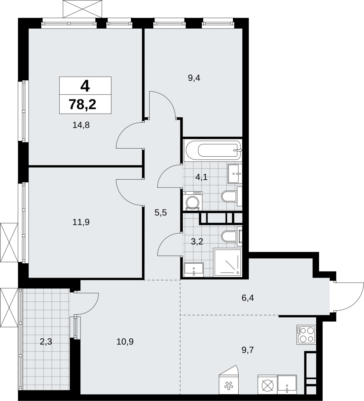 4-комнатная квартира с европланировкой в новом ЖК, недалеко от метро 4-комн. квартира с европланировкой в ЖК "Скандинавия" на 11 этаже. Квартира без отделки, после выдачи ключей можно делать ремонт. Общая площадь: 78.2 кв.м., жилая: 47 кв.м., общая площадь гостиной-столовой с кухонной зоной: 19.6 кв.м. Европейская планировка, площадь комнат позволяет разместить в них все необходимое, а в просторной кухне-гостиной удобно как готовить, так и отдыхать. Квартира угловая, окна oбecпeчивaют paвнoмepнoe ocвeщeниe в тeчeниe дня. В квартире одна лоджия, два совмещенных санузла. Высота потолков 2.95 м. Квартира будет сдана без отделки. Установлены стеклопакеты с повышенной тепло- и шумоизоляцией, установлены элементы отопления, входная дверь, заведены все коммуникации. Квартира находится в корпусе 2.18.1.4. Дом монолитный, одноподъездный, высотой 13 этажей. На этаже 10 квартир. В подъезде 1 пассажирский и 1 грузовой лифт. Начало строительства - 1 квартал 2024 года. Окончание строительства - 4 квартал 2026 года. Оформление сделки по договору долевого участия. Артикул квартиры по базе застройщика 23К-18.1.4-457. В шаговой доступности от жилого комплекса находятся станции метро (расстояние по прямой): «Потапово» (1.0 км), «Новомосковская» (1.8 км), «Новомосковская (Коммунарка)» (1.9 км). ПРЕДЛОЖЕНИЯ ОТ ЗАСТРОЙЩИКА В ОКТЯБРЕ 2025: Ипотека от 13,9 % для всех! На весь срок. "Семейная ипотека" вернулась. Ставка от 3,5 % на весь срок! Без удорожания! Выгодное ипотечное комбо: Ипотека от 2200 р./мес. и от 6 % после рождения ребёнка! Ипотека для всех "Держи пять!" - ставка 5 % на 2 года! *более подробную информацию по скидкам и акциям уточняйте в отделе продаж Жилой комплекс «Скандинавия» находится в 6,5 км от МКАД на юго-западе. Несмотря на близость к трем станциям метро и трем крупным шоссе, жилые дома защищены от суеты и шума мегаполиса. Бутовский лесопарк и небольшие водоемы создают обособленное пространство для гармоничной жизни и спокойного отдыха в окружении природы. Микрорайон возводится в уже сложившемся районе Новой Москвы, где для детей уже построены детские сады и школа, а для взрослых работают магазины, банки и кафе. (AQID02351020)