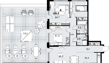 Продается многокомнатная квартира с европланировкой с террасой и отделкой в новостройке, у метро Просторная четырехкомнатная квартира с европланировкой и отделкой в ЖК "Скандинавия" на 2 этаже. Общая площадь: 105 кв.м., жилая: 52.3 кв.м., общая площадь гостиной-столовой с кухонной зоной: 27.4 кв.м. Европланировка, кухня и гостиная объединены в одно просторное помещение. Угловая квартира, очень светлая, естественная вентиляция при открытии окон. В квартире один балкон, два совмещенных санузла. Терраса представляет собой роскошную зону отдыха для проведение вечеров в кругу семьи и друзей или организация вечеринок. Высота потолков 2.97 м. В квартире будет выполнена полная отделка. Также выполнена вся электроразводка, установлены концевые выключатели и розетки, смонтированы межкомнатные двери, на полу ламинат и плитка, установлена вся сантехника. Квартира находится в корпусе 2.18.2.3. Дом монолитный, одноподъездный, высотой 18 этажей. На этаже 8 квартир. В подъезде 1 пассажирский и 1 грузовой лифт. Начало строительства - 1 квартал 2024 года. Окончание строительства - 1 квартал 2027 года. Оформление сделки по договору долевого участия. Артикул квартиры по базе застройщика 23К-18.2.3-282. В шаговой доступности от жилого комплекса имеются станции метро (расстояние по прямой): «Потапово» (1.0 км), «Новомосковская» (1.8 км), «Новомосковская (Коммунарка)» (1.9 км). ПРЕДЛОЖЕНИЯ ОТ ЗАСТРОЙЩИКА В ОКТЯБРЕ 2025: Ипотека от 13,9 % для всех! На весь срок. "Семейная ипотека" вернулась. Ставка от 3,5 % на весь срок! Без удорожания! Выгодное ипотечное комбо: Ипотека от 2200 р./мес. и от 6 % после рождения ребёнка! Ипотека для всех "Держи пять!" - ставка 5 % на 2 года! *более подробную информацию по скидкам и акциям уточняйте в отделе продаж ЖК "Скандинавия" - один из проектов компании А101, известной своей надежностью. Жилой комплекс расположен на юго-западе Москвы в 6-ти километрах от МКАД в окружении Бутовского лесопарка, район Коммунарка. Рядом открылись новые станции метро. Часть корпусов микрорайона "Скандинавия" уже заселены, полностью сформирована вся инфраструктура: больницы, детские сады, школы, магазины. Отличительная особенность жилого комплекса - невысокие дома, просторные дворы без машин, комфортная благоустроенная придомовая территория. (AQID02351322)