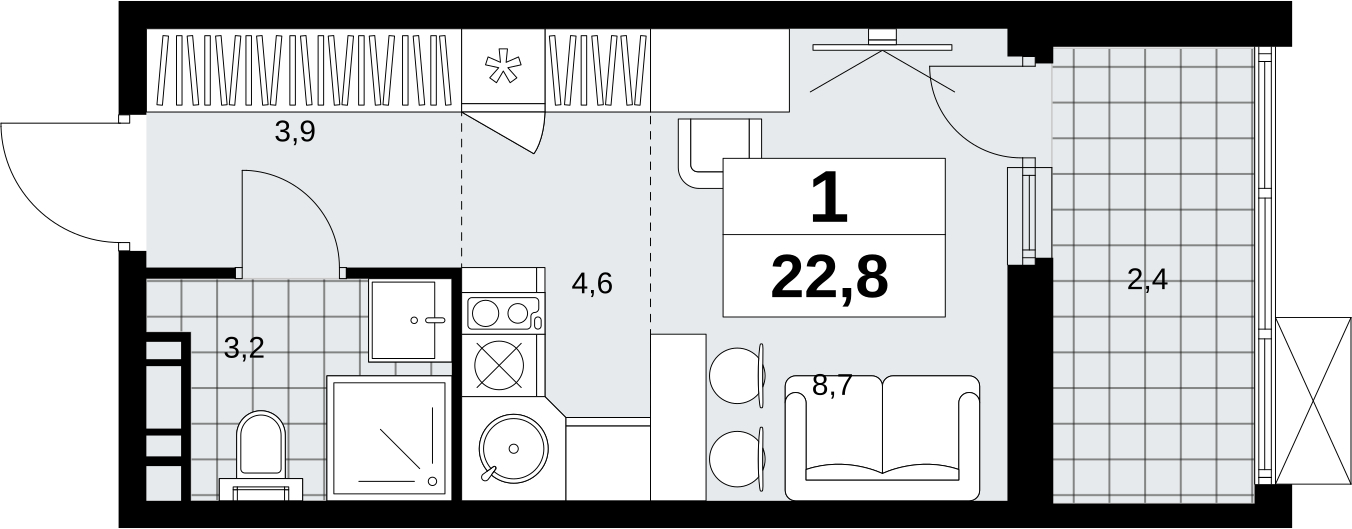 Продается 1-комн. квартира-студия в новом жилом комплексе, метро рядом Продается однокомнатная квартира-студия в ЖК "Скандинавия" на 12 этаже. Квартира без отделки, новый собственник может сделать ремонт по своему проекту. Общая площадь: 22.8 кв.м., площадь гостиной 13.3 кв.м., из которых 4.6 кв.м. выделено под кухонную зону. Все окна выходят на одну сторону. В квартире один балкон, один совмещенный санузел. Высота потолков 2.95 м. Квартира будет сдана без отделки. Установлены стеклопакеты с повышенной тепло- и шумоизоляцией, установлены элементы отопления, входная дверь, заведены все коммуникации. Квартира находится в корпусе 2.18.2.6. Дом монолитный, одноподъездный, высотой 18 этажей. На этаже 8 квартир. В подъезде 1 пассажирский и 1 грузовой лифт. Начало строительства - 1 квартал 2024 года. Окончание строительства - 4 квартал 2026 года. Оформление сделки по договору долевого участия. Артикул квартиры по базе застройщика 23К-18.2.6-764. В шаговой доступности от жилого комплекса находятся станции метро (расстояние по прямой): «Потапово» (1.0 км), «Новомосковская» (1.8 км), «Новомосковская (Коммунарка)» (1.9 км). ПРЕДЛОЖЕНИЯ ОТ ЗАСТРОЙЩИКА В ОКТЯБРЕ 2025: Ипотека от 13,9 % для всех! На весь срок. "Семейная ипотека" вернулась. Ставка от 3,5 % на весь срок! Без удорожания! Выгодное ипотечное комбо: Ипотека от 2200 р./мес. и от 6 % после рождения ребёнка! Ипотека для всех "Держи пять!" - ставка 5 % на 2 года! *более подробную информацию по скидкам и акциям уточняйте в отделе продаж Жилой комплекс «Скандинавия» находится в 6,5 км от МКАД на юго-западе. Несмотря на близость к трем станциям метро и трем крупным шоссе, жилые дома защищены от суеты и шума мегаполиса. Бутовский лесопарк и небольшие водоемы создают обособленное пространство для гармоничной жизни и спокойного отдыха в окружении природы. Микрорайон возводится в уже сложившемся районе Новой Москвы, где для детей уже построены детские сады и школа, а для взрослых работают магазины, банки и кафе. (AQID02351803)