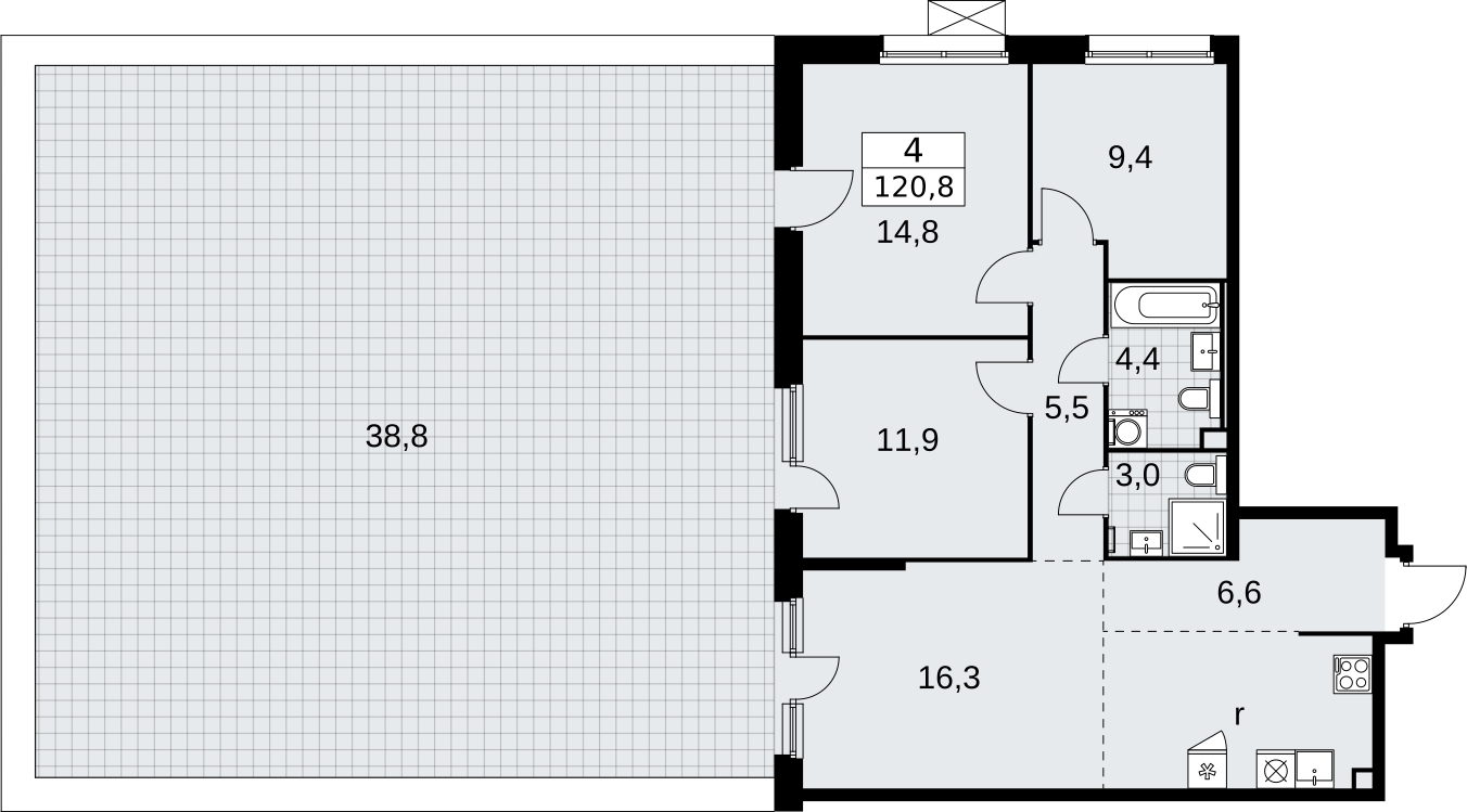 Продается многокомнатная квартира с европланировкой с террасой и отделкой в новом ЖК, рядом с метро Просторная 4-комн. квартира бизнес-класса с европланировкой и предчистовой отделкой в ЖК "Скандинавия" на 2 этаже. Общая площадь: 120.8 кв.м., жилая: 52.4 кв.м., суммарная площадь гостиной-столовой с кухонной зоной: 21.3 кв.м. Европейская планировка, кухня-гостиная - идеальный вариант для тех, кто любит часто принимать гостей. Квартира угловая, идеально подойдет любителям тишины и панорамных видов. В квартире один балкон, два совмещенных санузла. Наличие в квартире террасы размером 38.8 кв.м. дает возможность для создания зон отдыха в кругу семьи и друзей. Высота потолков 3.1 м. В квартире будет выполнена отделка WHITE BOX. На полу стяжка, стены выровнены и отшпаклеваны, проложены все электрокабели с подрозетниками и выключателями, готовы выводы под установку сантехники. Квартира находится в корпусе 2.25.3. Дом монолитный, одноподъездный, высотой 17 этажей. На этаже 10 квартир. В подъезде 1 пассажирский и 1 грузовой лифт. Начало строительства - 4 квартал 2023 года. Окончание строительства - 2 квартал 2026 года. Оформление сделки по договору долевого участия. Артикул квартиры по базе застройщика 24К-25.3-312. В шаговой доступности от жилого комплекса находятся станции метро (расстояние по прямой): «Потапово» (1.0 км), «Новомосковская» (1.8 км), «Новомосковская (Коммунарка)» (1.9 км). ПРЕДЛОЖЕНИЯ ОТ ЗАСТРОЙЩИКА В ОКТЯБРЕ 2025: Ипотека от 13,9 % для всех! На весь срок. "Семейная ипотека" вернулась. Ставка от 3,5 % на весь срок! Без удорожания! Выгодное ипотечное комбо: Ипотека от 2200 р./мес. и от 6 % после рождения ребёнка! Ипотека для всех "Держи пять!" - ставка 5 % на 2 года! *более подробную информацию по скидкам и акциям уточняйте в отделе продаж ЖК "Скандинавия" - один из проектов компании А101, известной своей надежностью. Жилой комплекс расположен на юго-западе Москвы в 6-ти километрах от МКАД в окружении Бутовского лесопарка, район Коммунарка. Рядом открылись новые станции метро. Часть корпусов микрорайона "Скандинавия" уже заселены, полностью сформирована вся инфраструктура: больницы, детские сады, школы, магазины. Отличительная особенность жилого комплекса - невысокие дома, просторные дворы без машин, комфортная благоустроенная придомовая территория. (AQID02283861)