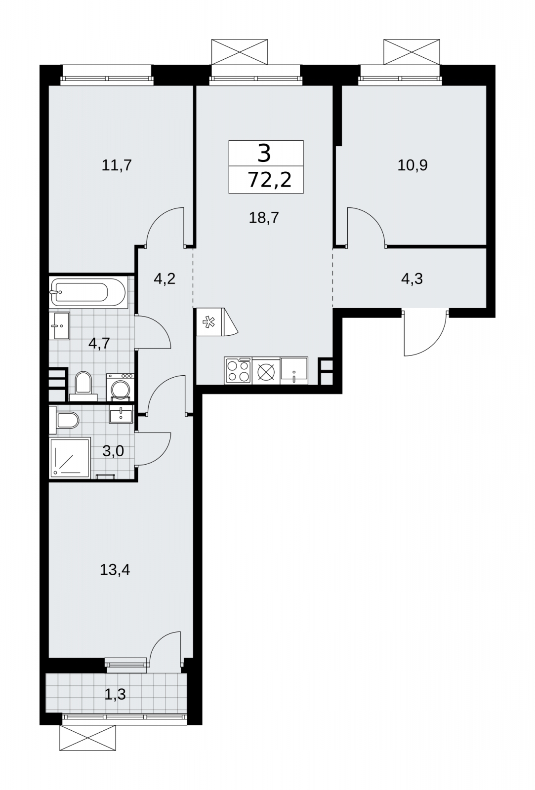 3-комн. квартира в новом ЖК, метро рядом 3-комн. квартира бизнес-класса в ЖК "Скандинавия" на 3 этаже. Квартира без отделки, новый собственник может сделать ремонт по индивидуальному дизайн-проекту. Общая площадь: 72.2 кв.м., жилая: 36 кв.м., площадь просторной кухни-столовой: 18.7 кв.м. Квартира - распашонка, без проходных комнат, окна выходят на paзные стороны дома. В квартире один балкон, два совмещенных санузла. Высота потолков 3.1 м. Квартира будет сдана без отделки. Установлены стеклопакеты с повышенной тепло- и шумоизоляцией, установлены элементы отопления, входная дверь, заведены все коммуникации. Дом монолитный, черырехподъездный, переменной этажности, от 9 до 13 этажей. Квартира находится во 2-й секции высотой 9 этажей в корпусе бизнес-класса 2.25.4. На этаже 6 квартир. В подъезде 1 грузовой лифт. Начало строительства - 4 квартал 2023 года. Окончание строительства - 2 квартал 2026 года. Оформление сделки по договору долевого участия. Артикул квартиры по базе застройщика 24К-25.4-543. В шаговой доступности от жилого комплекса расположены станции метро (расстояние по прямой): «Потапово» (1.0 км), «Новомосковская» (1.8 км), «Новомосковская (Коммунарка)» (1.9 км). ПРЕДЛОЖЕНИЯ ОТ ЗАСТРОЙЩИКА В ОКТЯБРЕ 2025: Ипотека от 13,9 % для всех! На весь срок. "Семейная ипотека" вернулась. Ставка от 3,5 % на весь срок! Без удорожания! Выгодное ипотечное комбо: Ипотека от 2200 р./мес. и от 6 % после рождения ребёнка! Ипотека для всех "Держи пять!" - ставка 5 % на 2 года! *более подробную информацию по скидкам и акциям уточняйте в отделе продаж ЖК Скандинавия — жилой квартал в Новой Москве от ГК «А101». ЖК Скандинавия включает 19 монолитных жилых домов разной этажности (7-16 этажей). Жилой комплекс расположен в 6,5 км от МКАД в поселке Коммунарка. В пешей доступности находятся школы, детские сады, магазины, кафе, поликлиника, спортивная школа, отделение почты, дом культуры и пр. объекты инфраструктуры. ЖК "Скандинавия" находится в 15-минутной доступности до 3 веток метро. Автомобилисты могут воспользоваться выездом на Калужское шоссе (4,7 км). (AQID02284092)