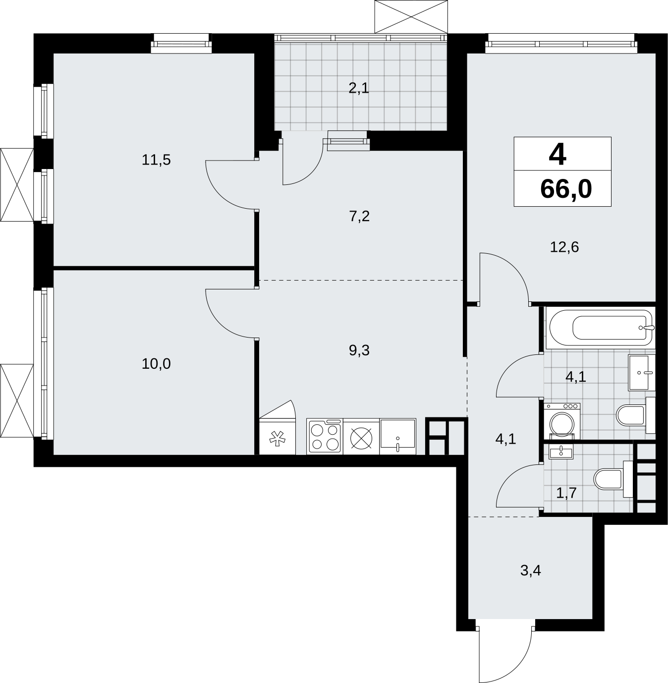 4-комнатная квартира с европланировкой в новостройке, недалеко от метро Продается 4-комн. квартира с европланировкой в ЖК "Скандинавия" на 7 этаже. Квартира без отделки, после оформления собственности можно делать ремонт. Общая площадь: 66 кв.м., жилая: 41.3 кв.м., общая площадь гостиной-столовой с кухонной зоной: 16.5 кв.м. Европланировка, кухня и гостиная объединены в одно просторное помещение. Угловая квартира, идеально подойдет любителям тишины и панорамных видов. В квартире одна лоджия, один совмещенный и один раздельный санузел. Высота потолков 2.95 м. Квартира будет сдана без отделки. Установлены стеклопакеты с повышенной тепло- и шумоизоляцией, установлены элементы отопления, входная дверь, заведены все коммуникации. Квартира находится в корпусе 2.18.1.1. Дом монолитный, одноподъездный, высотой 9 этажей. На этаже 6 квартир. В подъезде 1 пассажирский и 1 грузовой лифт. Начало строительства - 1 квартал 2024 года. Окончание строительства - 4 квартал 2026 года. Оформление сделки по договору долевого участия. Артикул квартиры по базе застройщика 23К-18.1.1-34. В шаговой доступности от жилого комплекса расположены станции метро (расстояние по прямой): «Потапово» (1.0 км), «Новомосковская» (1.8 км), «Новомосковская (Коммунарка)» (1.9 км). ПРЕДЛОЖЕНИЯ ОТ ЗАСТРОЙЩИКА В ОКТЯБРЕ 2025: Ипотека от 13,9 % для всех! На весь срок. "Семейная ипотека" вернулась. Ставка от 3,5 % на весь срок! Без удорожания! Выгодное ипотечное комбо: Ипотека от 2200 р./мес. и от 6 % после рождения ребёнка! Ипотека для всех "Держи пять!" - ставка 5 % на 2 года! *более подробную информацию по скидкам и акциям уточняйте в отделе продаж ЖК "Скандинавия" - один из проектов компании А101, известной своей надежностью. Жилой комплекс расположен на юго-западе Москвы в 6-ти километрах от МКАД в окружении Бутовского лесопарка, район Коммунарка. Рядом открылись новые станции метро. Часть корпусов микрорайона "Скандинавия" уже заселены, полностью сформирована вся инфраструктура: больницы, детские сады, школы, магазины. Отличительная особенность жилого комплекса - невысокие дома, просторные дворы без машин, комфортная благоустроенная придомовая территория. (AQID02350598)