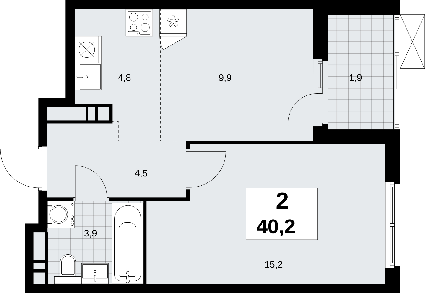2-комн. квартира с европланировкой в новом ЖК, метро рядом Продается двухкомнатная квартира с европланировкой в ЖК "Скандинавия" на 13 этаже. Квартира без отделки, полностью готова к ремонту. Общая площадь: 40.2 кв.м., жилая: 25.1 кв.м., общая площадь гостиной-столовой с кухонной зоной: 14.7 кв.м. Европейская планировка, кухня-гостиная - идеальный вариант для тех, кто любит часто принимать гостей. Комнаты изолированные, все окна выходят на одну сторону. В квартире одна лоджия, один совмещенный санузел. Высота потолков 2.95 м. Квартира будет сдана без отделки. Установлены стеклопакеты с повышенной тепло- и шумоизоляцией, установлены элементы отопления, входная дверь, заведены все коммуникации. Квартира находится в корпусе 2.18.1.2. Дом монолитный, одноподъездный, высотой 14 этажей. На этаже 10 квартир. В подъезде 1 пассажирский и 1 грузовой лифт. Начало строительства - 1 квартал 2024 года. Окончание строительства - 4 квартал 2026 года. Оформление сделки по договору долевого участия. Артикул квартиры по базе застройщика 23К-18.1.2-168. В шаговой доступности от жилого комплекса имеются станции метро (расстояние по прямой): «Потапово» (1.0 км), «Новомосковская» (1.8 км), «Новомосковская (Коммунарка)» (1.9 км). ПРЕДЛОЖЕНИЯ ОТ ЗАСТРОЙЩИКА В ОКТЯБРЕ 2025: Ипотека от 13,9 % для всех! На весь срок. "Семейная ипотека" вернулась. Ставка от 3,5 % на весь срок! Без удорожания! Выгодное ипотечное комбо: Ипотека от 2200 р./мес. и от 6 % после рождения ребёнка! Ипотека для всех "Держи пять!" - ставка 5 % на 2 года! *более подробную информацию по скидкам и акциям уточняйте в отделе продаж ЖК "Скандинавия" - один из проектов компании А101, известной своей надежностью. Жилой комплекс расположен на юго-западе Москвы в 6-ти километрах от МКАД в окружении Бутовского лесопарка, район Коммунарка. Рядом открылись новые станции метро. Часть корпусов микрорайона "Скандинавия" уже заселены, полностью сформирована вся инфраструктура: больницы, детские сады, школы, магазины. Отличительная особенность жилого комплекса - невысокие дома, просторные дворы без машин, комфортная благоустроенная придомовая территория. (AQID02350731)