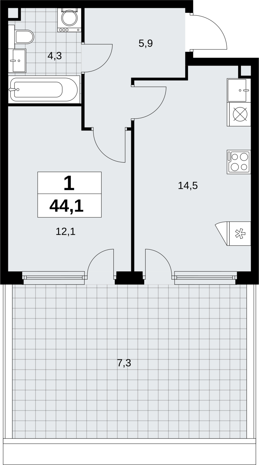 1-комнатная квартира с террасой в новом жилом комплексе, рядом с метро Продается однокомнатная квартира в ЖК "Скандинавия" на 2 этаже. Квартира без отделки, полностью готова к ремонту. Общая площадь: 44.1 кв.м., жилая: 12.1 кв.м., площадь просторной кухни-столовой: 14.5 кв.м. Все окна выходят на одну сторону. В квартире один балкон, один совмещенный санузел. Терраса представляет собой роскошную зону отдыха, где вы на свой вкус можете создать атмосферу комфорта и уюта. Высота потолков 2.95 м. Квартира будет сдана без отделки. Установлены стеклопакеты с повышенной тепло- и шумоизоляцией, установлены элементы отопления, входная дверь, заведены все коммуникации. Квартира находится в корпусе 2.18.1.4. Дом монолитный, одноподъездный, высотой 13 этажей. На этаже 10 квартир. В подъезде 1 пассажирский и 1 грузовой лифт. Начало строительства - 1 квартал 2024 года. Окончание строительства - 4 квартал 2026 года. Оформление сделки по договору долевого участия. Артикул квартиры по базе застройщика 23К-18.1.4-364. В шаговой доступности от жилого комплекса имеются станции метро (расстояние по прямой): «Потапово» (1.0 км), «Новомосковская» (1.8 км), «Новомосковская (Коммунарка)» (1.9 км). ПРЕДЛОЖЕНИЯ ОТ ЗАСТРОЙЩИКА В ОКТЯБРЕ 2025: Ипотека от 13,9 % для всех! На весь срок. "Семейная ипотека" вернулась. Ставка от 3,5 % на весь срок! Без удорожания! Выгодное ипотечное комбо: Ипотека от 2200 р./мес. и от 6 % после рождения ребёнка! Ипотека для всех "Держи пять!" - ставка 5 % на 2 года! *более подробную информацию по скидкам и акциям уточняйте в отделе продаж ЖК Скандинавия — жилой квартал в Новой Москве от ГК «А101». ЖК Скандинавия включает 19 монолитных жилых домов разной этажности (7-16 этажей). Жилой комплекс расположен в 6,5 км от МКАД в поселке Коммунарка. В пешей доступности находятся школы, детские сады, магазины, кафе, поликлиника, спортивная школа, отделение почты, дом культуры и пр. объекты инфраструктуры. ЖК "Скандинавия" находится в 15-минутной доступности до 3 веток метро. Автомобилисты могут воспользоваться выездом на Калужское шоссе (4,7 км). (AQID02350927)