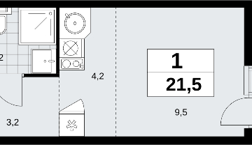 Продается 1-комн. квартира-студия в новом ЖК, метро рядом Однокомнатная квартира-студия от застройщика в ЖК "Скандинавия" на 8 этаже. Квартира без отделки, полностью готова к ремонту. Общая площадь: 21.5 кв.м., площадь гостиной 13.7 кв.м., из которых 4.2 кв.м. выделено под кухонную зону. Все окна выходят на одну сторону. В квартире один балкон, один совмещенный санузел. Высота потолков 2.95 м. Квартира будет сдана без отделки. Установлены стеклопакеты с повышенной тепло- и шумоизоляцией, установлены элементы отопления, входная дверь, заведены все коммуникации. Квартира находится в корпусе 2.18.1.3. Дом монолитный, одноподъездный, высотой 19 этажей. На этаже 10 квартир. В подъезде 1 пассажирский и 1 грузовой лифт. Начало строительства - 1 квартал 2024 года. Окончание строительства - 4 квартал 2026 года. Оформление сделки по договору долевого участия. Артикул квартиры по базе застройщика 23К-18.1.3-242. В шаговой доступности от жилого комплекса расположена станция метро (расстояние по прямой) «Потапово» (1.1 км). ЖК "Скандинавия" - один из проектов компании А101, известной своей надежностью. Жилой комплекс расположен на юго-западе Москвы в 6-ти километрах от МКАД в окружении Бутовского лесопарка, район Коммунарка. Рядом открылись новые станции метро. Часть корпусов микрорайона "Скандинавия" уже заселены, полностью сформирована вся инфраструктура: больницы, детские сады, школы, магазины. Отличительная особенность жилого комплекса - невысокие дома, просторные дворы без машин, комфортная благоустроенная придомовая территория. (AQID02542774)