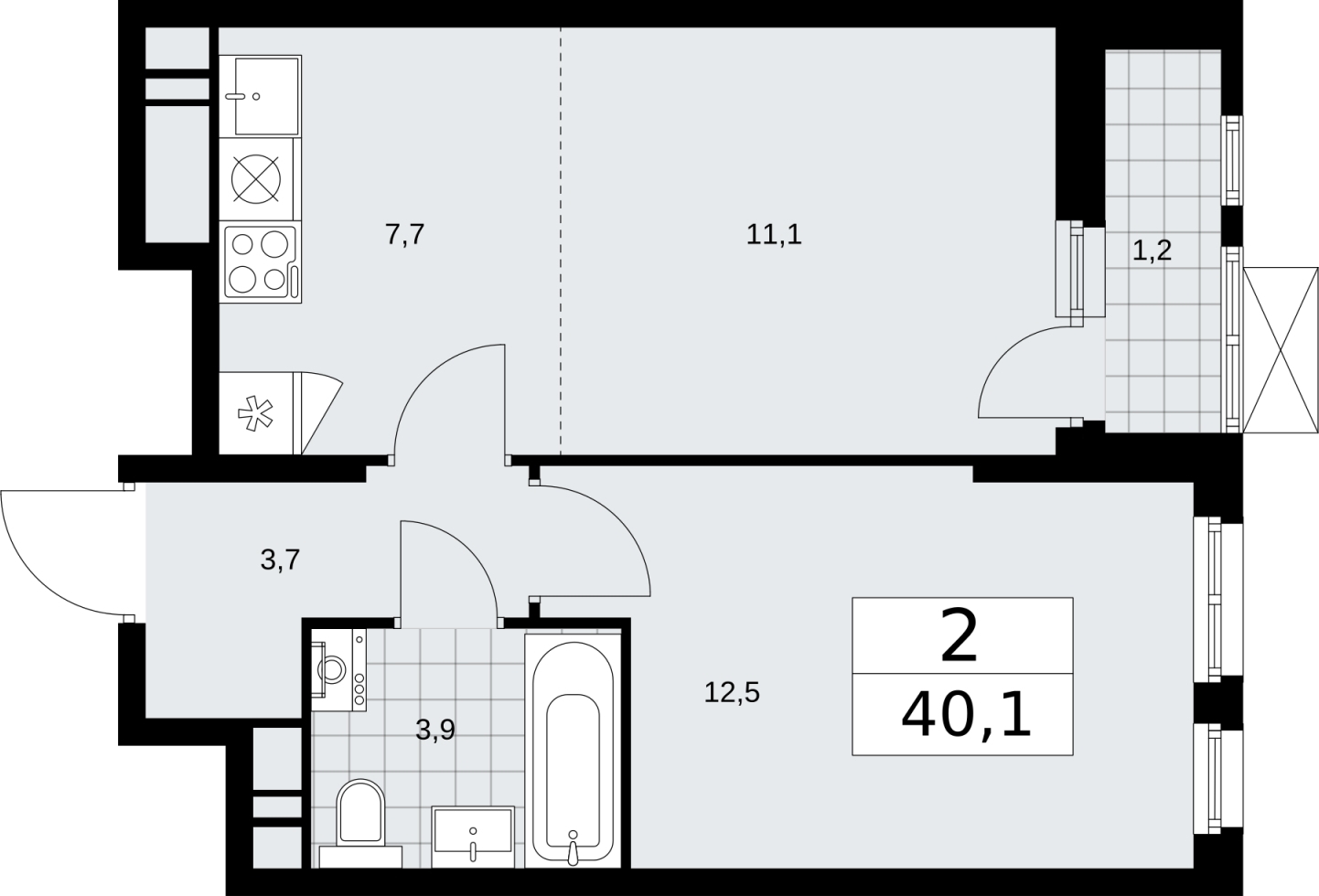 Продается 2-комн. квартира с европланировкой в новостройке, у метро 2-комн. квартира с европланировкой от застройщика в ЖК "Скандинавия" на 18 этаже. Квартира без отделки, новый владелец может сделать ремонт по индивидуальному дизайн-проекту. Общая площадь: 40.1 кв.м., жилая: 23.6 кв.м., общая площадь гостиной-столовой с кухонной зоной: 18.8 кв.м. Европланировка, за счет большой площади кухни-гостиной квартира выглядит просторной и очень удобна для жизни. Комнаты изолированные, все окна выходят на одну сторону. В квартире одна лоджия, один совмещенный санузел. Высота потолков 2.95 м. Квартира находится в корпусе 37.2.1. Дом монолитный, одноподъездный, высотой 18 этажей. На этаже 11 квартир. В подъезде 2 грузовых лифта. Начало строительства - 3 квартал 2023 года. Окончание строительства - 1 квартал 2026 года. Оформление сделки по договору долевого участия. В шаговой доступности от жилого комплекса находится станция метро (расстояние по прямой) «Потапово» (1.1 км). ЖК "Скандинавия" - один из проектов компании А101, известной своей надежностью. Жилой комплекс расположен на юго-западе Москвы в 6-ти километрах от МКАД в окружении Бутовского лесопарка, район Коммунарка. Рядом открылись новые станции метро. Часть корпусов микрорайона "Скандинавия" уже заселены, полностью сформирована вся инфраструктура: больницы, детские сады, школы, магазины. Отличительная особенность жилого комплекса - невысокие дома, просторные дворы без машин, комфортная благоустроенная придомовая территория. (AQID02255051)