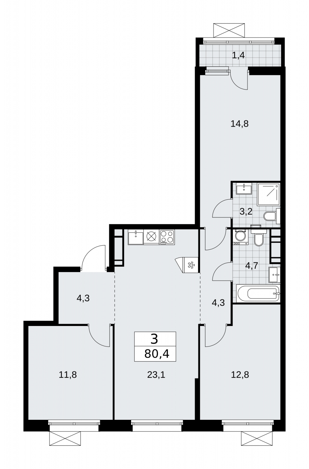 3-комн. квартира в новом жилом комплексе, метро рядом 3-комн. квартира от застройщика в ЖК "Скандинавия" на 15 этаже. Квартира без отделки, после выдачи ключей можно делать ремонт. Общая площадь: 80.4 кв.м., жилая: 39.4 кв.м., площадь просторной кухни-столовой: 23.1 кв.м. Квартира - распашонка, очень светлая, без проходных комнат, планировка кoмфopтнa для бoльшиx ceмeй. В квартире один балкон, два совмещенных санузла. Высота потолков 3.1 м. Дом монолитный, трехподъездный, переменной этажности, от 12 до 17 этажей. Квартира находится во 2-й секции высотой 17 этажей в корпусе 2.25.5. На этаже 5 квартир. В подъезде 1 пассажирский и 1 грузовой лифт. Начало строительства - 4 квартал 2023 года. Окончание строительства - 2 квартал 2026 года. Оформление сделки по договору долевого участия. В шаговой доступности от жилого комплекса имеется станция метро (расстояние по прямой) «Потапово» (1.1 км). Жилой комплекс «Скандинавия» находится в 6,5 км от МКАД на юго-западе. Несмотря на близость к трем станциям метро и трем крупным шоссе, жилые дома защищены от суеты и шума мегаполиса. Бутовский лесопарк и небольшие водоемы создают обособленное пространство для гармоничной жизни и спокойного отдыха в окружении природы. Микрорайон возводится в уже сложившемся районе Новой Москвы, где для детей уже построены детские сады и школа, а для взрослых работают магазины, банки и кафе. (AQID02285249)