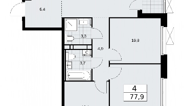 Продается 4-комнатная квартира с европланировкой в новом ЖК, рядом с метро 4-комн. квартира с европланировкой от застройщика в ЖК "Скандинавия" на 15 этаже. Квартира без отделки, после оформления собственности можно делать ремонт. Общая площадь: 77.9 кв.м., жилая: 43.7 кв.м., суммарная площадь гостиной-столовой с кухонной зоной: 18.4 кв.м. Европланировка, за счет большой площади кухни-гостиной квартира выглядит просторной и очень удобна для жизни. Квартира угловая, идеально подойдет любителям тишины и панорамных видов. В квартире одна лоджия, два совмещенных и один раздельный санузел. Высота потолков 3.1 м. Квартира находится в корпусе 2.25.6. Дом монолитный, одноподъездный, высотой 17 этажей. На этаже 6 квартир. В подъезде 1 пассажирский и 1 грузовой лифт. Начало строительства - 4 квартал 2023 года. Окончание строительства - 2 квартал 2026 года. Оформление сделки по договору долевого участия. В шаговой доступности от жилого комплекса находится станция метро (расстояние по прямой) «Потапово» (1.1 км). Жилой комплекс «Скандинавия» находится в 6,5 км от МКАД на юго-западе. Несмотря на близость к трем станциям метро и трем крупным шоссе, жилые дома защищены от суеты и шума мегаполиса. Бутовский лесопарк и небольшие водоемы создают обособленное пространство для гармоничной жизни и спокойного отдыха в окружении природы. Микрорайон возводится в уже сложившемся районе Новой Москвы, где для детей уже построены детские сады и школа, а для взрослых работают магазины, банки и кафе. (AQID02285438)