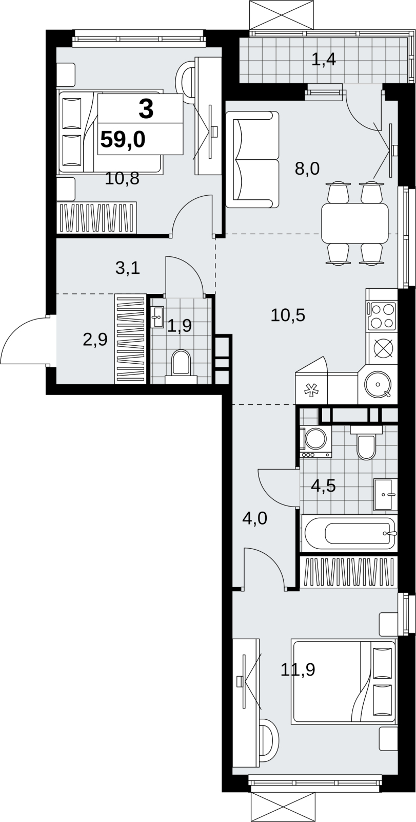 Площадь:59 м2
