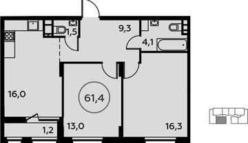 Площадь:61 м2