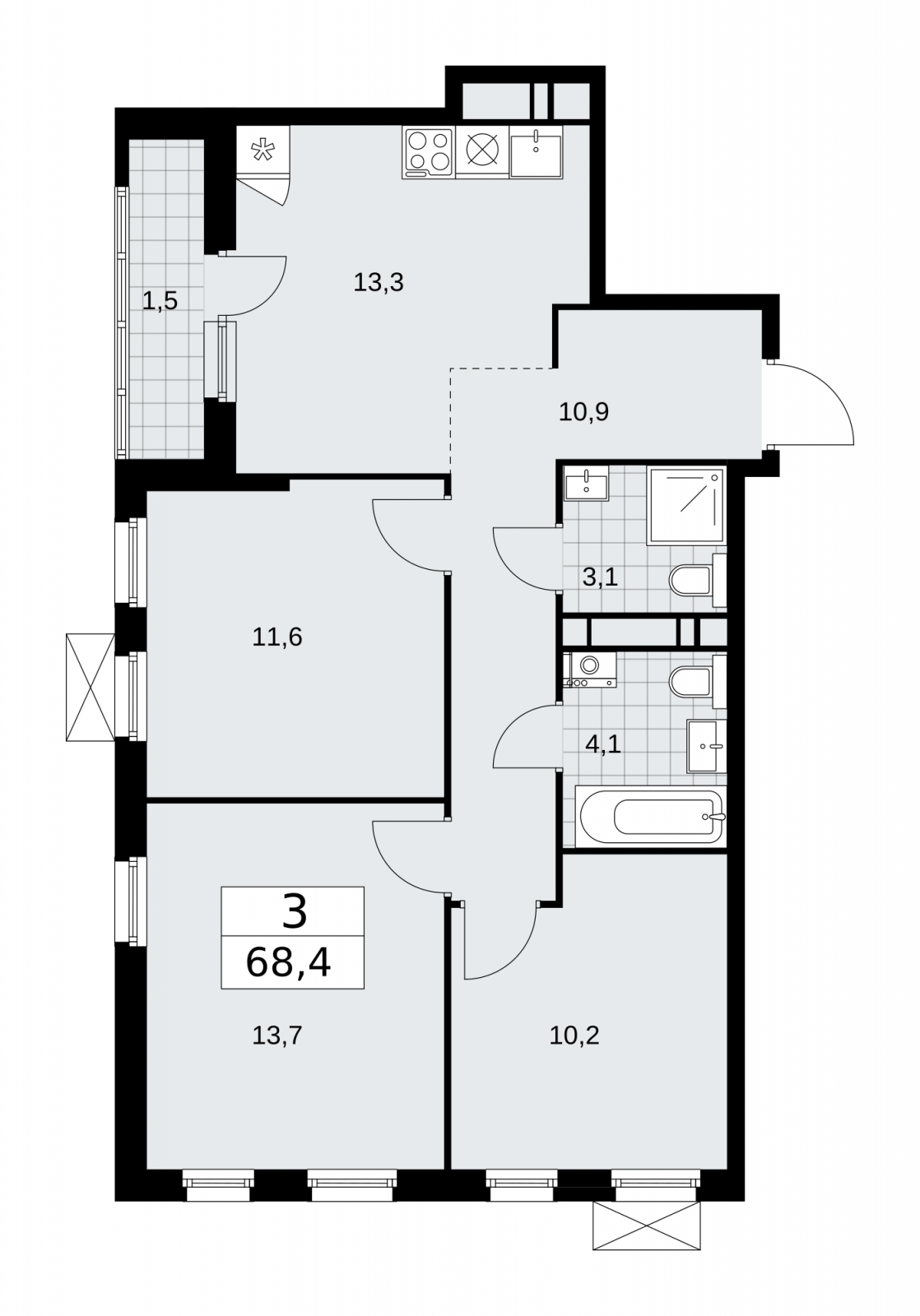 Продается 3-комн. квартира в новом жилом комплексе, рядом с метро Продается трехкомнатная квартира от застройщика в ЖК "Скандинавия" на 18 этаже. Квартира без отделки, после получения ключей можно делать ремонт. Общая площадь: 68.4 кв.м., жилая: 35.5 кв.м., площадь просторной кухни-столовой: 13.3 кв.м. Угловая квартира, очень светлая, естественная вентиляция при открытии окон. В квартире одна лоджия, два совмещенных санузла. Высота потолков 2.95 м. Квартира будет сдана без отделки. Установлены стеклопакеты с повышенной тепло- и шумоизоляцией, установлены элементы отопления, входная дверь, заведены все коммуникации. Квартира находится в корпусе 37.2.3. Дом монолитный, одноподъездный, высотой 18 этажей. На этаже 11 квартир. В подъезде 2 грузовых лифта. Начало строительства - 3 квартал 2023 года. Окончание строительства - 1 квартал 2026 года. Оформление сделки по договору долевого участия. Артикул квартиры по базе застройщика 24К-37.2.3-555. В шаговой доступности от жилого комплекса расположена станция метро (расстояние по прямой) «Потапово» (1.1 км). ЖК Скандинавия — жилой квартал в Новой Москве от ГК «А101». ЖК Скандинавия включает 19 монолитных жилых домов разной этажности (7-16 этажей). Жилой комплекс расположен в 6,5 км от МКАД в поселке Коммунарка. В пешей доступности находятся школы, детские сады, магазины, кафе, поликлиника, спортивная школа, отделение почты, дом культуры и пр. объекты инфраструктуры. ЖК "Скандинавия" находится в 15-минутной доступности до 3 веток метро. Автомобилисты могут воспользоваться выездом на Калужское шоссе (4,7 км). (AQID02254811)