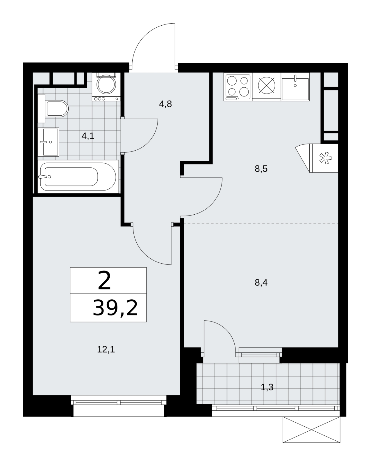 Площадь:39 м2
