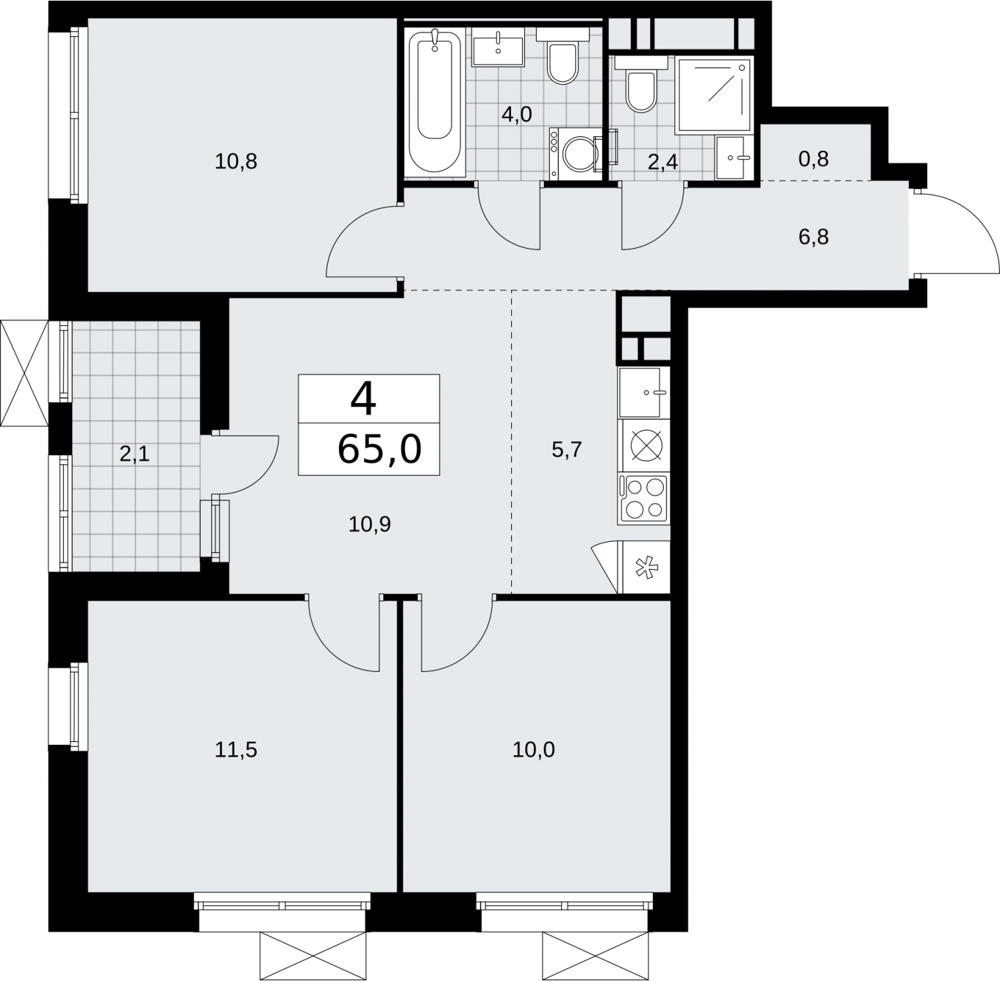 4-комн. квартира с отделкой в новом жилом комплексе, рядом с метро Продается 4-комн. квартира с европланировкой и отделкой в ЖК "Скандинавия" на 14 этаже. Общая площадь: 65 кв.м., жилая: 43.2 кв.м., общая площадь гостиной-столовой с кухонной зоной: 16.6 кв.м. Европланировка, кухня и гостиная объединены в одно просторное помещение. Квартира угловая, идеально подойдет любителям тишины и панорамных видов. В квартире одна лоджия, два совмещенных санузла. Высота потолков 3.1 м. Квартира находится в корпусе 2.25.2. Дом монолитный, одноподъездный, высотой 17 этажей. На этаже 10 квартир. В подъезде 1 пассажирский и 1 грузовой лифт. Начало строительства - 4 квартал 2023 года. Окончание строительства - 2 квартал 2026 года. Оформление сделки по договору долевого участия. В шаговой доступности от жилого комплекса расположена станция метро (расстояние по прямой) «Потапово» (1.1 км). Жилой комплекс «Скандинавия» находится в 6,5 км от МКАД на юго-западе. Несмотря на близость к трем станциям метро и трем крупным шоссе, жилые дома защищены от суеты и шума мегаполиса. Бутовский лесопарк и небольшие водоемы создают обособленное пространство для гармоничной жизни и спокойного отдыха в окружении природы. Микрорайон возводится в уже сложившемся районе Новой Москвы, где для детей уже построены детские сады и школа, а для взрослых работают магазины, банки и кафе. (AQID02284696)