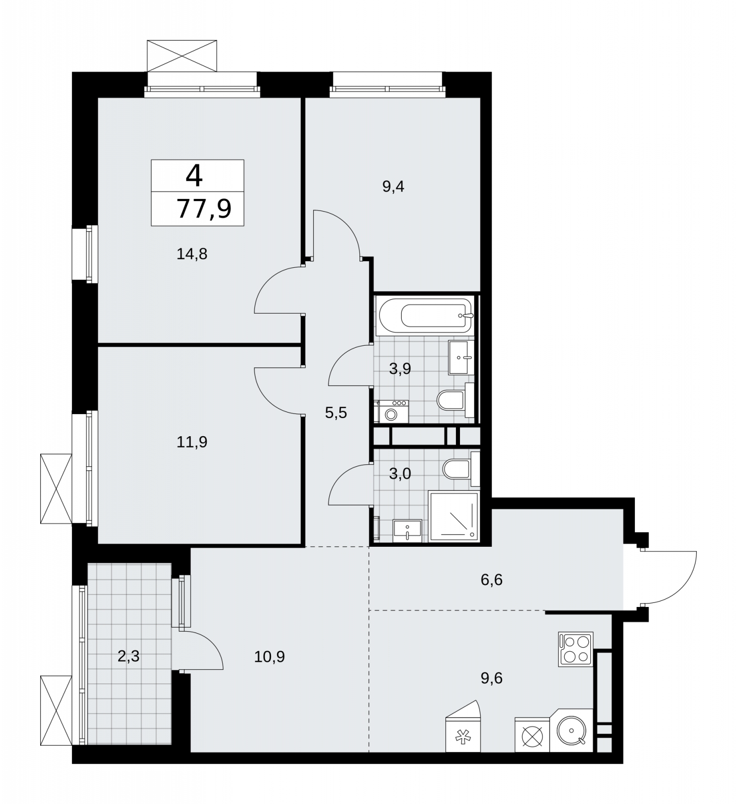4-комнатная квартира с европланировкой с отделкой в новостройке, рядом с метро Четырехкомнатная квартира с европланировкой и отделкой в ЖК "Скандинавия" на 17 этаже. Общая площадь: 77.9 кв.м., жилая: 47 кв.м., суммарная площадь гостиной-столовой с кухонной зоной: 20.5 кв.м. Европейская планировка, кухня-гостиная - идеальный вариант для тех, кто любит часто принимать гостей. Квартира угловая, идеально подойдет любителям тишины и панорамных видов. В квартире одна лоджия, два совмещенных санузла. Высота потолков 3.1 м. Квартира находится в корпусе 2.25.2. Дом монолитный, одноподъездный, высотой 17 этажей. На этаже 10 квартир. В подъезде 1 пассажирский и 1 грузовой лифт. Начало строительства - 4 квартал 2023 года. Окончание строительства - 2 квартал 2026 года. Оформление сделки по договору долевого участия. В шаговой доступности от жилого комплекса имеется станция метро (расстояние по прямой) «Потапово» (1.1 км). ЖК Скандинавия — жилой квартал в Новой Москве от ГК «А101». ЖК Скандинавия включает 19 монолитных жилых домов разной этажности (7-16 этажей). Жилой комплекс расположен в 6,5 км от МКАД в поселке Коммунарка. В пешей доступности находятся школы, детские сады, магазины, кафе, поликлиника, спортивная школа, отделение почты, дом культуры и пр. объекты инфраструктуры. ЖК "Скандинавия" находится в 15-минутной доступности до 3 веток метро. Автомобилисты могут воспользоваться выездом на Калужское шоссе (4,7 км). (AQID02284727)