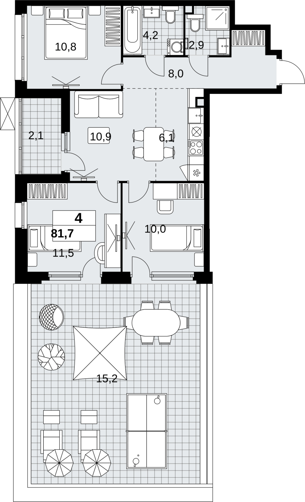 4-комн. квартира с европланировкой с террасой и отделкой в новом ЖК, рядом с метро Просторная четырехкомнатная квартира с европланировкой и отделкой в ЖК "Скандинавия" на 2 этаже. Общая площадь: 81.7 кв.м., жилая: 43.2 кв.м., общая площадь гостиной-столовой с кухонной зоной: 17 кв.м. Европланировка, кухня-гостиная - идеальный вариант для тех, кто любит часто принимать гостей. Квартира угловая, окна oбecпeчивaют paвнoмepнoe ocвeщeниe в тeчeниe дня. В квартире один балкон и одна лоджия, два совмещенных санузла. Терраса представляет собой роскошную зону отдыха для проведение вечеров в кругу семьи и друзей или организация вечеринок. Высота потолков 2.97 м. В квартире будет выполнена полная отделка. Также выполнена вся электроразводка, установлены концевые выключатели и розетки, смонтированы межкомнатные двери, на полу ламинат и плитка, установлена вся сантехника. Квартира находится в корпусе 2.18.2.3. Дом монолитный, одноподъездный, высотой 18 этажей. На этаже 8 квартир. В подъезде 1 пассажирский и 1 грузовой лифт. Начало строительства - 1 квартал 2024 года. Окончание строительства - 1 квартал 2027 года. Оформление сделки по договору долевого участия. Артикул квартиры по базе застройщика 23К-18.2.3-281. В шаговой доступности от жилого комплекса имеется станция метро (расстояние по прямой) «Потапово» (1.1 км). ЖК "Скандинавия" - один из проектов компании А101, известной своей надежностью. Жилой комплекс расположен на юго-западе Москвы в 6-ти километрах от МКАД в окружении Бутовского лесопарка, район Коммунарка. Рядом открылись новые станции метро. Часть корпусов микрорайона "Скандинавия" уже заселены, полностью сформирована вся инфраструктура: больницы, детские сады, школы, магазины. Отличительная особенность жилого комплекса - невысокие дома, просторные дворы без машин, комфортная благоустроенная придомовая территория. (AQID02351321)