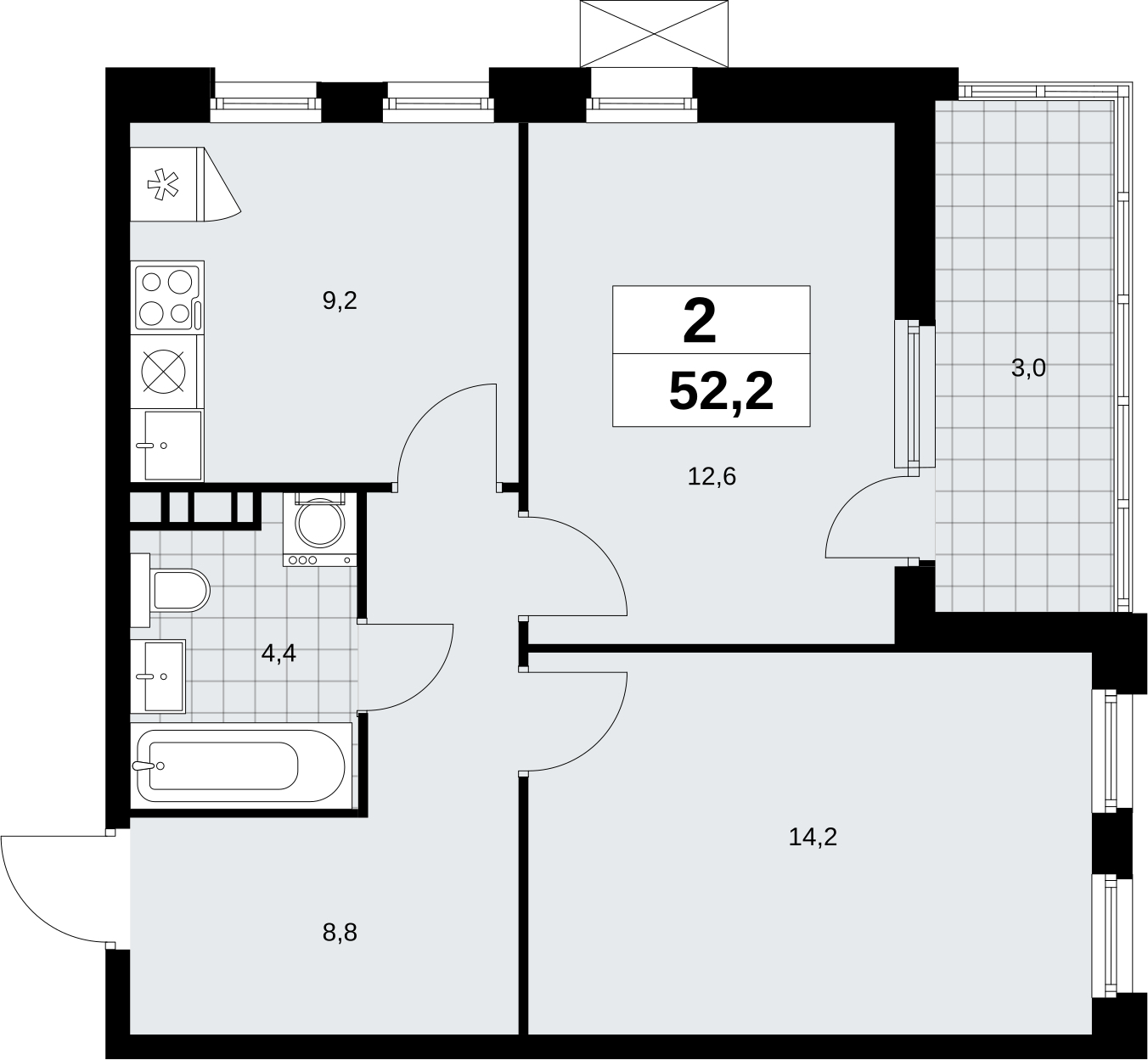 Продается 2-комн. квартира в новостройке, недалеко от метро 2-комн. квартира в ЖК "Скандинавия" на 7 этаже. Квартира без отделки, после оформления собственности можно делать ремонт. Общая площадь: 52.2 кв.м., жилая: 26.8 кв.м., площадь просторной кухни-столовой: 9.2 кв.м. Квартира угловая, окна oбecпeчивaют paвнoмepнoe ocвeщeниe в тeчeниe дня. В квартире одна лоджия, один совмещенный санузел. Высота потолков 2.95 м. Квартира находится в корпусе 2.18.1.3. Дом монолитный, одноподъездный, высотой 19 этажей. На этаже 10 квартир. В подъезде 1 пассажирский и 1 грузовой лифт. Начало строительства - 1 квартал 2024 года. Окончание строительства - 4 квартал 2026 года. Оформление сделки по договору долевого участия. В шаговой доступности от жилого комплекса имеется станция метро (расстояние по прямой) «Потапово» (1.1 км). ЖК Скандинавия — жилой квартал в Новой Москве от ГК «А101». ЖК Скандинавия включает 19 монолитных жилых домов разной этажности (7-16 этажей). Жилой комплекс расположен в 6,5 км от МКАД в поселке Коммунарка. В пешей доступности находятся школы, детские сады, магазины, кафе, поликлиника, спортивная школа, отделение почты, дом культуры и пр. объекты инфраструктуры. ЖК "Скандинавия" находится в 15-минутной доступности до 3 веток метро. Автомобилисты могут воспользоваться выездом на Калужское шоссе (4,7 км). (AQID02352368)