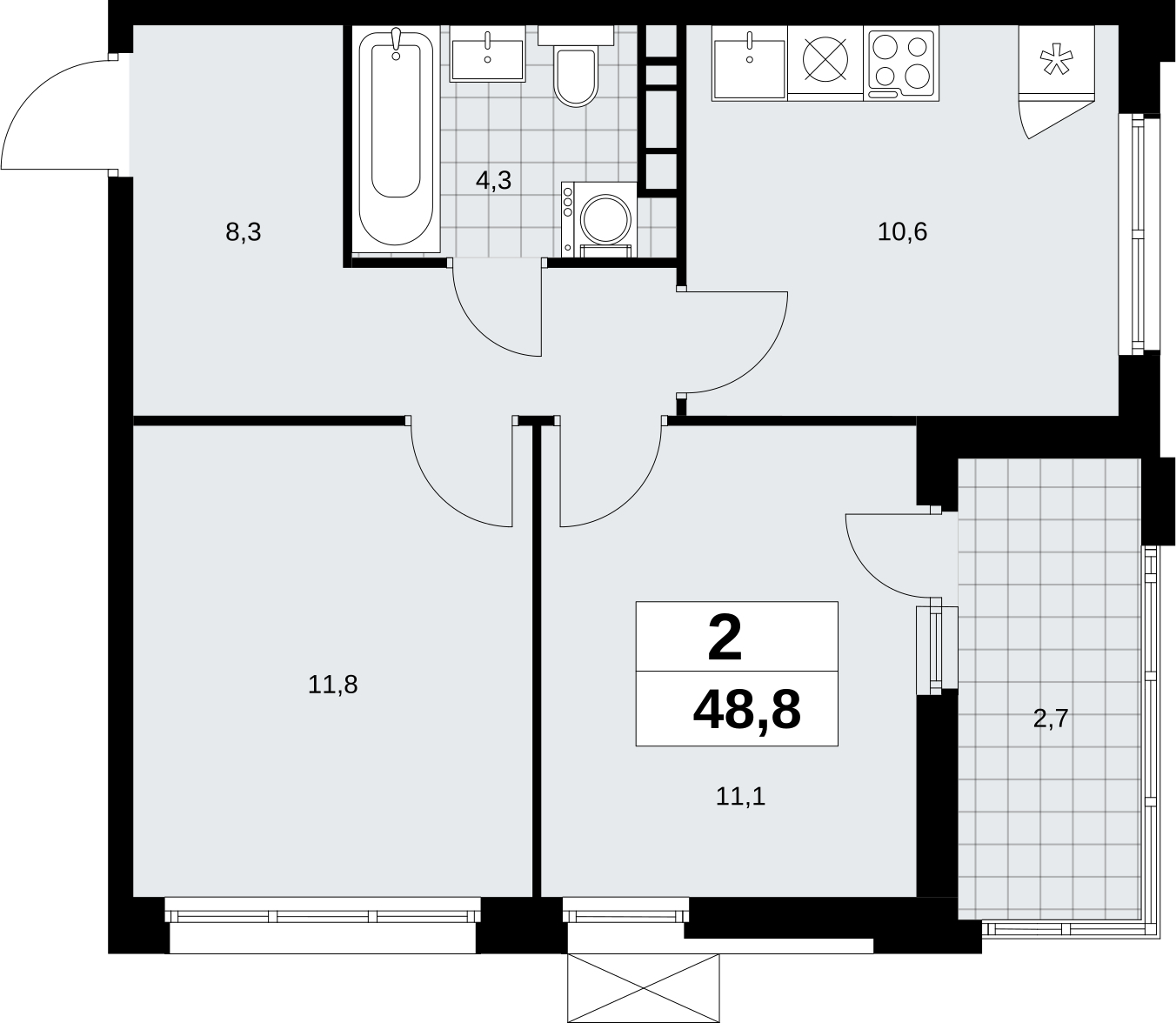 Двухкомнатная квартира в новом ЖК, рядом с метро 2-комн. квартира в ЖК "Скандинавия" на 13 этаже. Квартира без отделки, новый собственник может сделать ремонт по индивидуальному проекту. Общая площадь: 48.8 кв.м., жилая: 22.9 кв.м., площадь просторной кухни-столовой: 10.6 кв.м. Угловая квартира, идеально подойдет любителям тишины и панорамных видов. В квартире одна лоджия, один совмещенный санузел. Высота потолков 2.95 м. Квартира находится в корпусе 2.18.1.3. Дом монолитный, одноподъездный, высотой 19 этажей. На этаже 10 квартир. В подъезде 1 пассажирский и 1 грузовой лифт. Начало строительства - 1 квартал 2024 года. Окончание строительства - 4 квартал 2026 года. Оформление сделки по договору долевого участия. В шаговой доступности от жилого комплекса находится станция метро (расстояние по прямой) «Потапово» (1.1 км). Жилой комплекс «Скандинавия» находится в 6,5 км от МКАД на юго-западе. Несмотря на близость к трем станциям метро и трем крупным шоссе, жилые дома защищены от суеты и шума мегаполиса. Бутовский лесопарк и небольшие водоемы создают обособленное пространство для гармоничной жизни и спокойного отдыха в окружении природы. Микрорайон возводится в уже сложившемся районе Новой Москвы, где для детей уже построены детские сады и школа, а для взрослых работают магазины, банки и кафе. (AQID02352431)