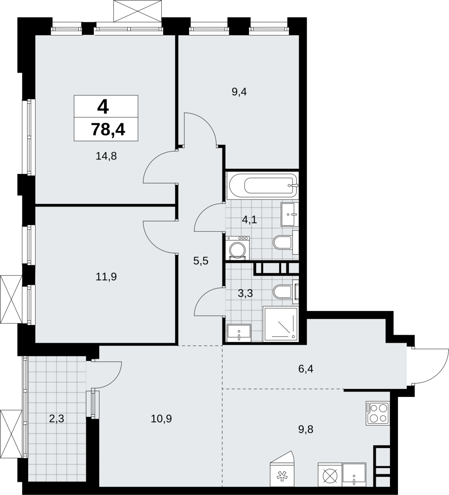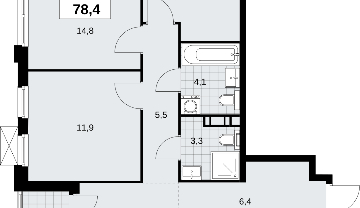 4-комнатная квартира в новом ЖК, метро рядом 4-комн. квартира с европланировкой в ЖК "Скандинавия" на 14 этаже. Квартира без отделки, после оформления собственности можно делать ремонт. Общая площадь: 78.4 кв.м., жилая: 47 кв.м., общая площадь гостиной-столовой с кухонной зоной: 20.7 кв.м. Европейская планировка, кухня-гостиная - идеальный вариант для тех, кто любит часто принимать гостей. Угловая квартира, идеально подойдет любителям тишины и панорамных видов. В квартире одна лоджия, два совмещенных санузла. Высота потолков 2.95 м. Квартира находится в корпусе 2.18.1.3. Дом монолитный, одноподъездный, высотой 19 этажей. На этаже 10 квартир. В подъезде 1 пассажирский и 1 грузовой лифт. Начало строительства - 1 квартал 2024 года. Окончание строительства - 4 квартал 2026 года. Оформление сделки по договору долевого участия. В шаговой доступности от жилого комплекса расположена станция метро (расстояние по прямой) «Потапово» (1.1 км). ЖК "Скандинавия" - один из проектов компании А101, известной своей надежностью. Жилой комплекс расположен на юго-западе Москвы в 6-ти километрах от МКАД в окружении Бутовского лесопарка, район Коммунарка. Рядом открылись новые станции метро. Часть корпусов микрорайона "Скандинавия" уже заселены, полностью сформирована вся инфраструктура: больницы, детские сады, школы, магазины. Отличительная особенность жилого комплекса - невысокие дома, просторные дворы без машин, комфортная благоустроенная придомовая территория. (AQID02352445)