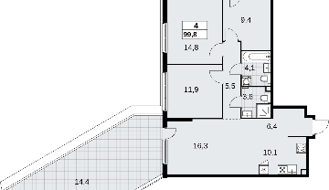 Продается 4-комн. квартира с террасой в новом жилом комплексе, рядом с метро 4-комн. квартира с европланировкой от застройщика в ЖК "Скандинавия" на 2 этаже. Квартира без отделки, после оформления собственности можно делать ремонт. Общая площадь: 99.8 кв.м., жилая: 52.4 кв.м., общая площадь гостиной-столовой с кухонной зоной: 26.4 кв.м. Европейская планировка, зона гостиной комнаты объединена с кухней. Угловая квартира, очень светлая, естественная вентиляция при открытии окон. В квартире два балкона, два совмещенных санузла. Наличие в квартире террасы дает возможность для обустройства дополнительной площади. Высота потолков 2.95 м. Квартира находится в корпусе 2.18.1.4. Дом монолитный, одноподъездный, высотой 13 этажей. На этаже 10 квартир. В подъезде 1 пассажирский и 1 грузовой лифт. Начало строительства - 1 квартал 2024 года. Окончание строительства - 4 квартал 2026 года. Оформление сделки по договору долевого участия. В шаговой доступности от жилого комплекса находится станция метро (расстояние по прямой) «Потапово» (1.1 км). ЖК "Скандинавия" - один из проектов компании А101, известной своей надежностью. Жилой комплекс расположен на юго-западе Москвы в 6-ти километрах от МКАД в окружении Бутовского лесопарка, район Коммунарка. Рядом открылись новые станции метро. Часть корпусов микрорайона "Скандинавия" уже заселены, полностью сформирована вся инфраструктура: больницы, детские сады, школы, магазины. Отличительная особенность жилого комплекса - невысокие дома, просторные дворы без машин, комфортная благоустроенная придомовая территория. (AQID02352505)