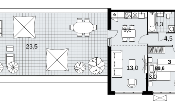 Трехкомнатная квартира с террасой и отделкой в новостройке, метро рядом Продается трехкомнатная квартира с европланировкой и отделкой в ЖК "Скандинавия" на 2 этаже. Общая площадь: 88.6 кв.м., жилая: 38.4 кв.м., общая площадь гостиной-столовой с кухонной зоной: 22.8 кв.м. Европланировка, за счет большой площади кухни-гостиной квартира выглядит просторной и очень удобна для жизни. Квартира угловая, очень светлая, естественная вентиляция при открытии окон. В квартире один балкон, один совмещенный и один раздельный санузел. Терраса представляет собой роскошную зону отдыха, где вы на свой вкус можете создать атмосферу комфорта и уюта. Высота потолков 2.95 м. Дом монолитный, двухподъездный, высотой 12 этажей. Квартира находится в 1-й секции в корпусе 2.18.2.2. На этаже 6 квартир. В подъезде 1 пассажирский и 1 грузовой лифт. Начало строительства - 1 квартал 2024 года. Окончание строительства - 1 квартал 2027 года. Оформление сделки по договору долевого участия. В шаговой доступности от жилого комплекса расположена станция метро (расстояние по прямой) «Потапово» (1.1 км). Жилой комплекс «Скандинавия» находится в 6,5 км от МКАД на юго-западе. Несмотря на близость к трем станциям метро и трем крупным шоссе, жилые дома защищены от суеты и шума мегаполиса. Бутовский лесопарк и небольшие водоемы создают обособленное пространство для гармоничной жизни и спокойного отдыха в окружении природы. Микрорайон возводится в уже сложившемся районе Новой Москвы, где для детей уже построены детские сады и школа, а для взрослых работают магазины, банки и кафе. (AQID02352750)