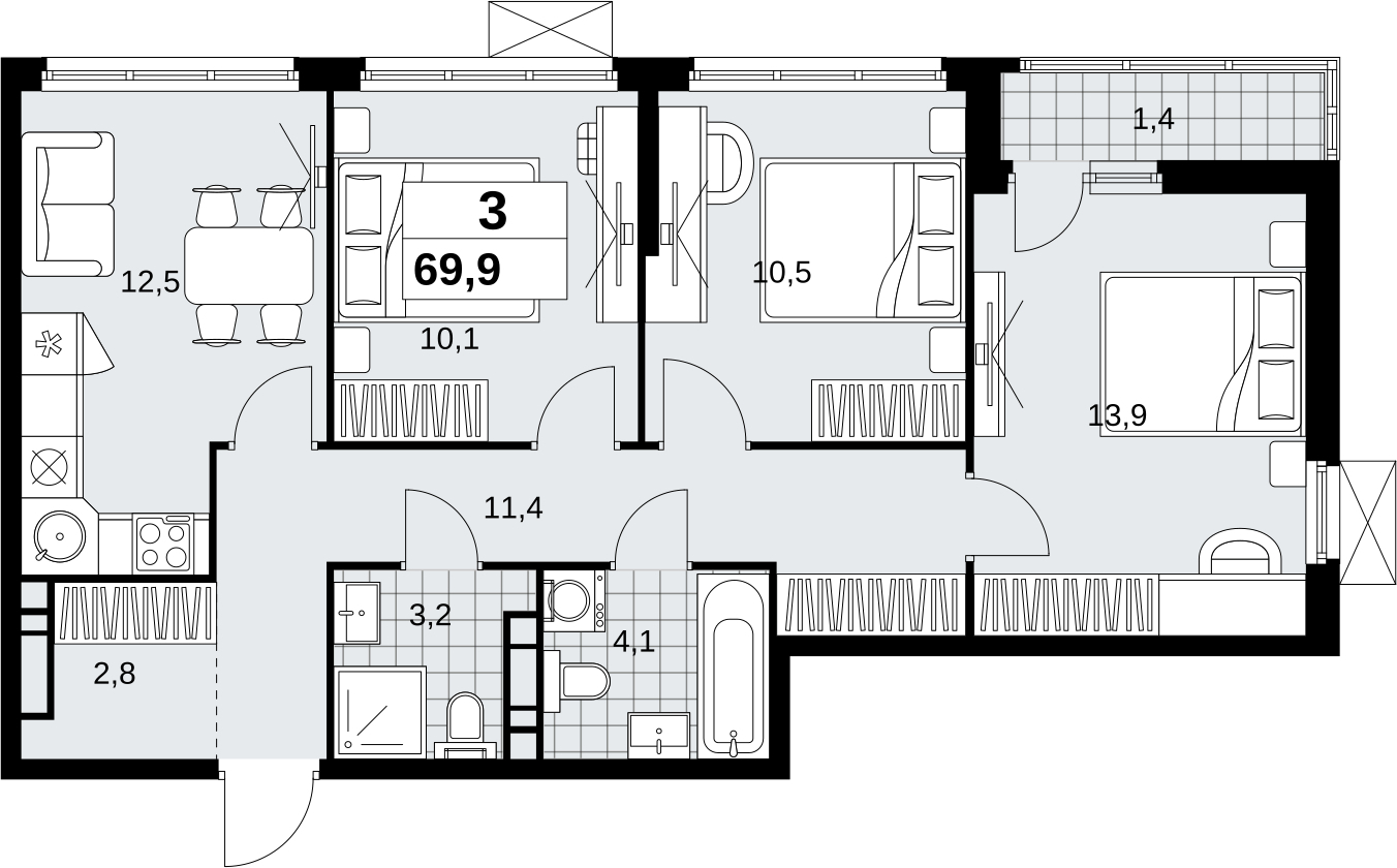 Площадь:69 м2