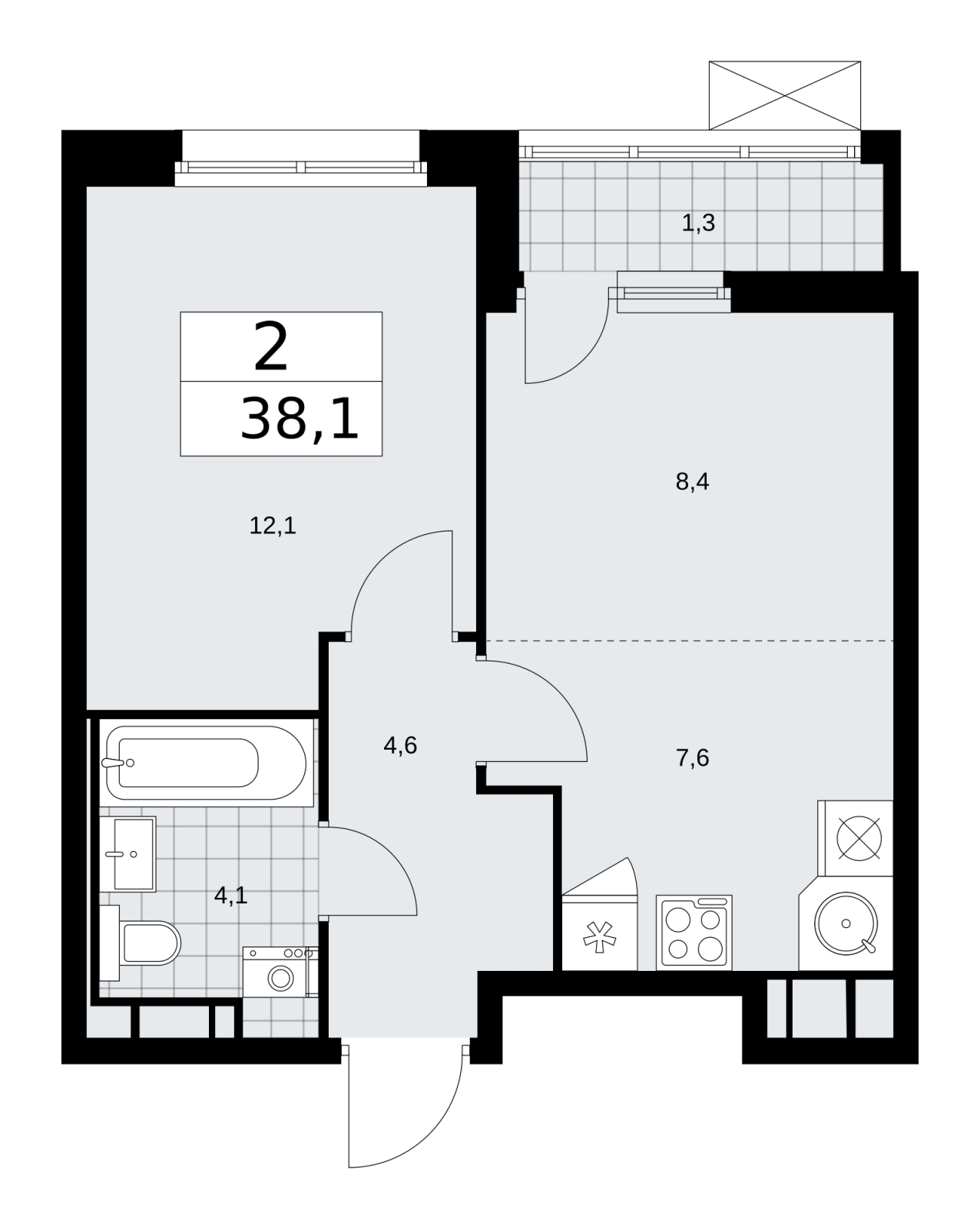Площадь:38 м2