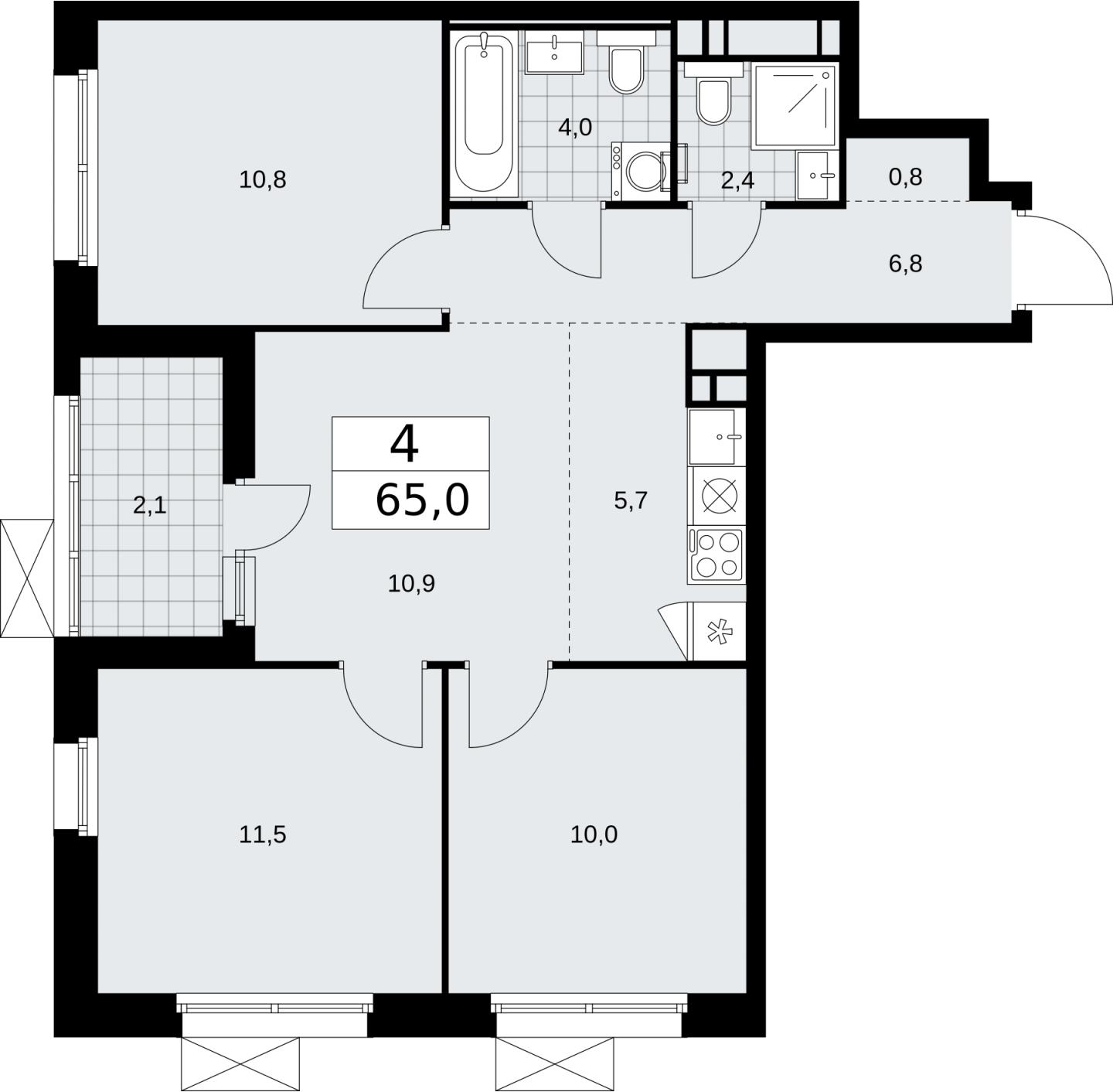 4-комнатная квартира с отделкой в новом жилом комплексе, у метро Просторная четырехкомнатная квартира с европланировкой и отделкой в ЖК "Скандинавия" на 17 этаже. Общая площадь: 65 кв.м., жилая: 43.2 кв.м., общая площадь гостиной-столовой с кухонной зоной: 16.6 кв.м. Европланировка, за счет большой площади кухни-гостиной квартира выглядит просторной и очень удобна для жизни. Угловая квартира, очень светлая, естественная вентиляция при открытии окон. В квартире одна лоджия, два совмещенных санузла. Высота потолков 3.1 м. Квартира находится в корпусе 2.25.2. Дом монолитный, одноподъездный, высотой 17 этажей. На этаже 10 квартир. В подъезде 1 пассажирский и 1 грузовой лифт. Начало строительства - 4 квартал 2023 года. Окончание строительства - 2 квартал 2026 года. Оформление сделки по договору долевого участия. В шаговой доступности от жилого комплекса имеется станция метро (расстояние по прямой) «Потапово» (1.1 км). Жилой комплекс «Скандинавия» находится в 6,5 км от МКАД на юго-западе. Несмотря на близость к трем станциям метро и трем крупным шоссе, жилые дома защищены от суеты и шума мегаполиса. Бутовский лесопарк и небольшие водоемы создают обособленное пространство для гармоничной жизни и спокойного отдыха в окружении природы. Микрорайон возводится в уже сложившемся районе Новой Москвы, где для детей уже построены детские сады и школа, а для взрослых работают магазины, банки и кафе. (AQID02284726)