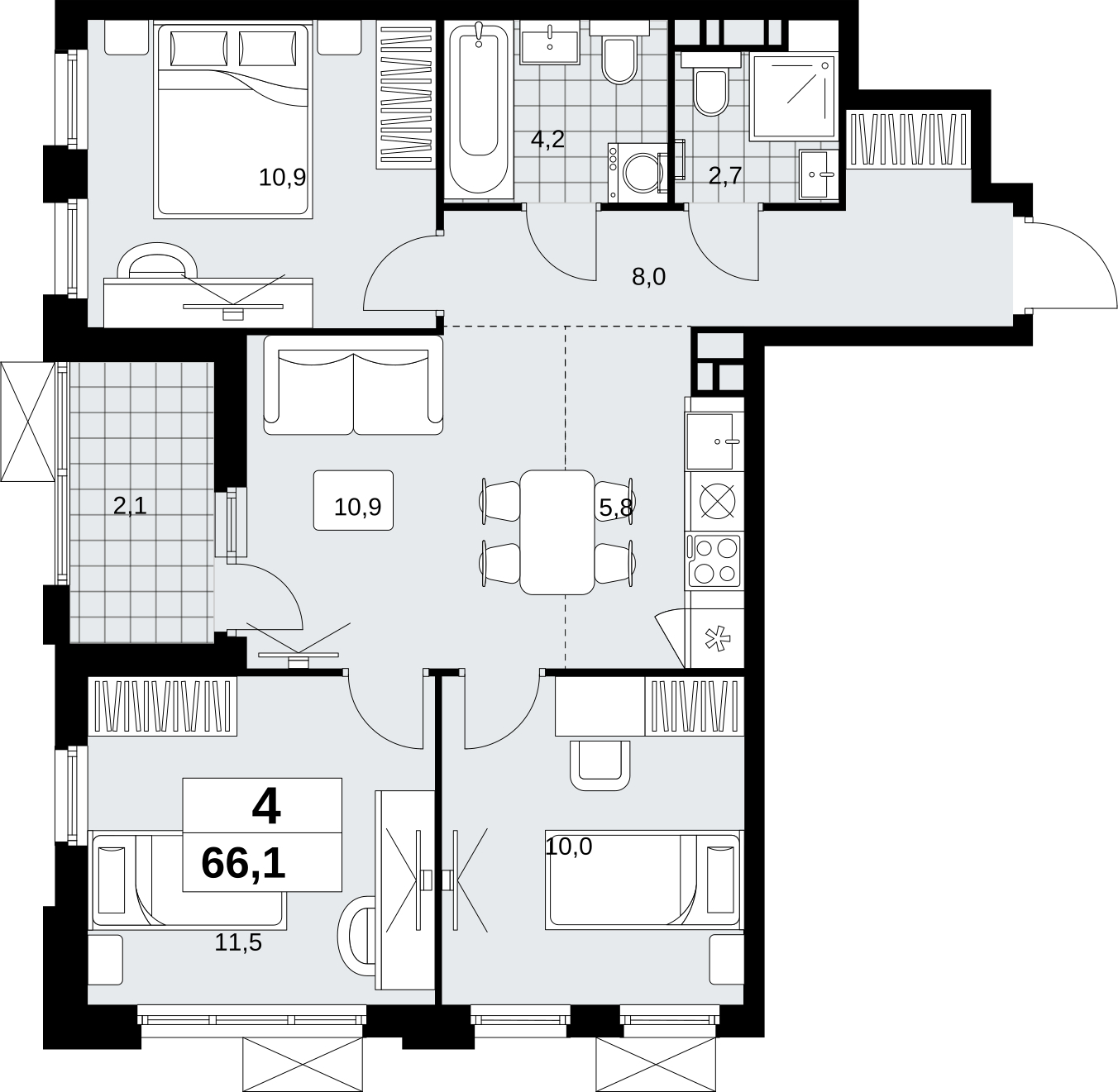 Просторная многокомнатная квартира с отделкой в новом ЖК, рядом с метро Продается четырехкомнатная квартира с европланировкой и отделкой в ЖК "Скандинавия" на 16 этаже. Общая площадь: 66.1 кв.м., жилая: 43.3 кв.м., общая площадь гостиной-столовой с кухонной зоной: 16.7 кв.м. Европейская планировка, кухня-гостиная - идеальный вариант для тех, кто любит часто принимать гостей. Угловая квартира, идеально подойдет любителям тишины и панорамных видов. В квартире одна лоджия, два совмещенных санузла. Высота потолков 2.97 м. Квартира находится в корпусе 2.18.2.3. Дом монолитный, одноподъездный, высотой 18 этажей. На этаже 8 квартир. В подъезде 1 пассажирский и 1 грузовой лифт. Начало строительства - 1 квартал 2024 года. Окончание строительства - 1 квартал 2027 года. Оформление сделки по договору долевого участия. В шаговой доступности от жилого комплекса расположена станция метро (расстояние по прямой) «Потапово» (1.1 км). ЖК "Скандинавия" - один из проектов компании А101, известной своей надежностью. Жилой комплекс расположен на юго-западе Москвы в 6-ти километрах от МКАД в окружении Бутовского лесопарка, район Коммунарка. Рядом открылись новые станции метро. Часть корпусов микрорайона "Скандинавия" уже заселены, полностью сформирована вся инфраструктура: больницы, детские сады, школы, магазины. Отличительная особенность жилого комплекса - невысокие дома, просторные дворы без машин, комфортная благоустроенная придомовая территория. (AQID02353025)