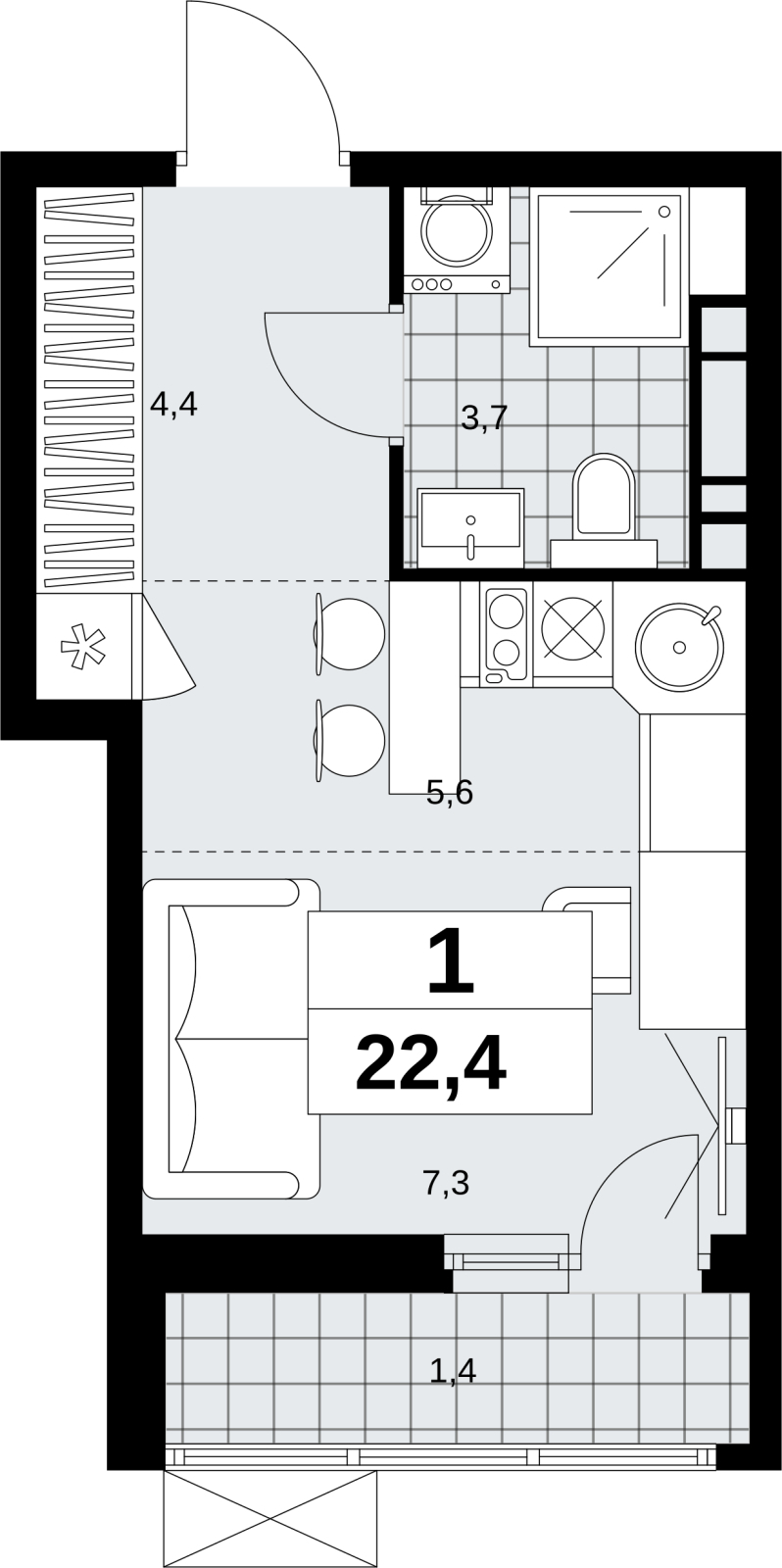 Площадь:22 м2