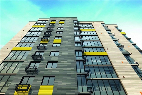 «Счастье на Дмитровке» - 15-этажное монолитное здание, возводимое по оригинальному проекту и привлекающее внимание фасадами с яркими цветными элементами и сплошным остеклением лоджий и балконов.