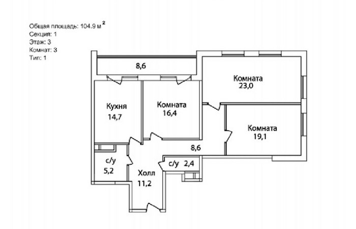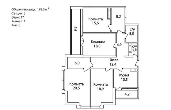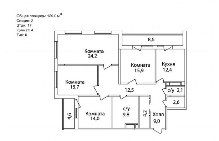 Площадь предлагаемой застройщиком недвижимости составляет от 46 до 130 кв. метров. Всего в комплексе представлены 252 квартиры, от одно- до четырехкомнатных. Сданы они без внутренней отделки.