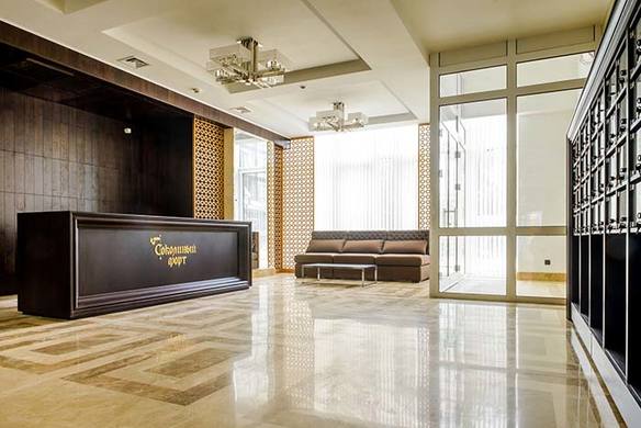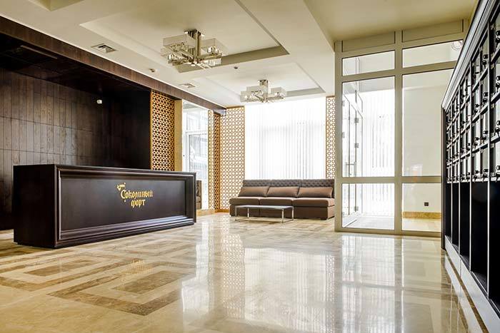 В жилом комплексе бизнес-класса «Соколиный форт», расположенном рядом с Национальным лесопарком «Лосиный остров», завершена отделка входной группы первой секции.