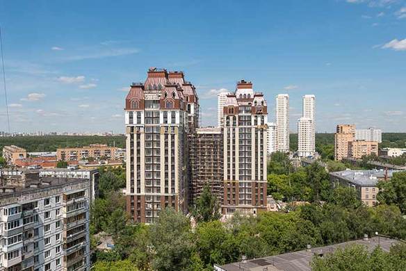 Новый комплекс выстроен на закрытой, тщательно охраняемой территории — здание переменной этажности, выдержанное в редком для России «готическом стиле» - «башни» со стрельчатыми окнами, венчающие крыши, теплые природные тона в отделке фасадов и изящное кованое обрамление балконов и панорамных окон.