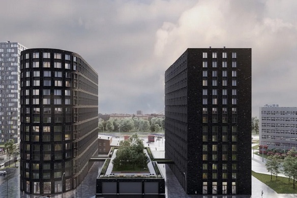 Новый комплекс — два 15-этажных монолитных корпуса, объединенных одноэтажным общественным зданием — оно полностью отводится под объекты внутренней инфраструктуры. Дома возводятся по оригинальному проекту, привлекая внимание необычными силуэтами и яркими черными фасадами с большой площадью остекления.