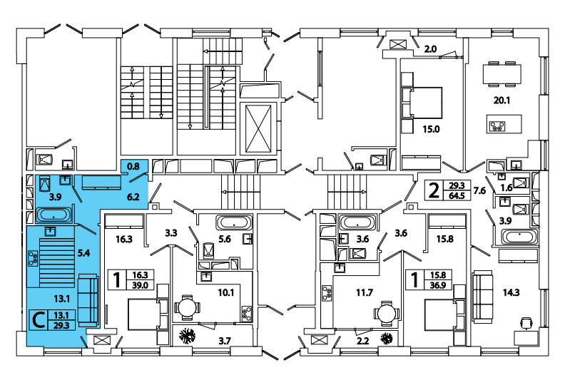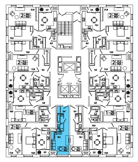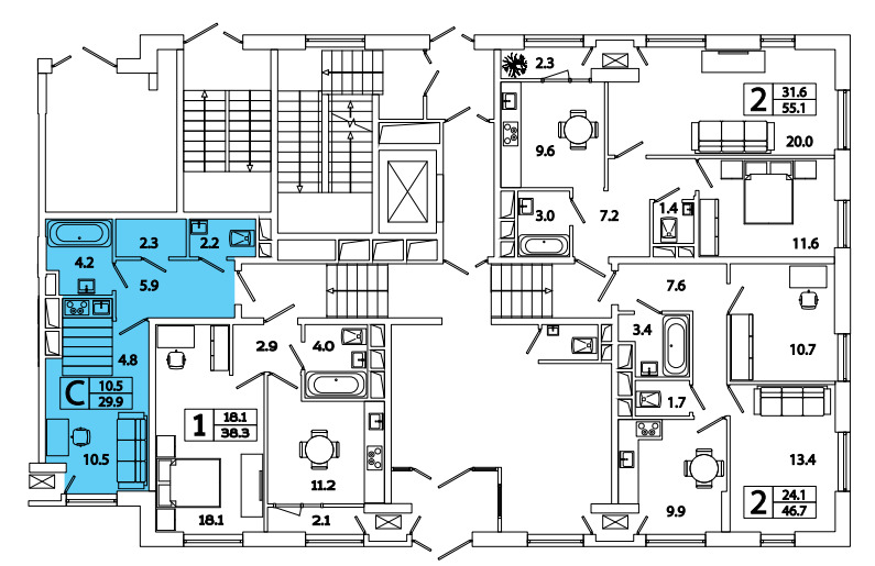 Застройщиком предлагаются студии и классические одно-, двух- и трехкомнатные квартиры различной площади и планировки.