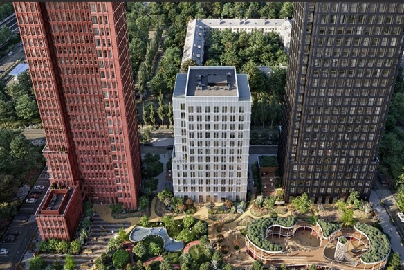 Территория застраивается корпусами переменной этажности. Разноуровневые здания создадут визуальную динамику и эффектно выделят доминантную башню с яркими фасадами медного оттенка. Из панорамных окон откроются виды на Москву-реку, внутренний благоустроенный двор и архитектурные достопримечательности столицы.