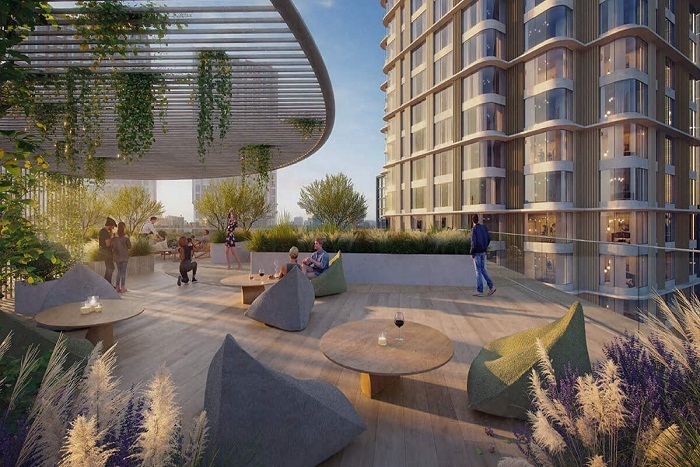 Новый комплекс включает два здания -башню «Stories Tower» и 11-этажный дом «Terrace House», очертаниями напоминающие плывущие яхты. Между ними расположен закрытый приватный двор-патио — отличное место для отдыха будущих жителей.