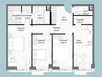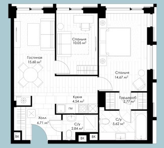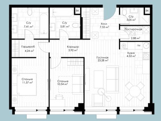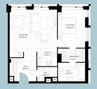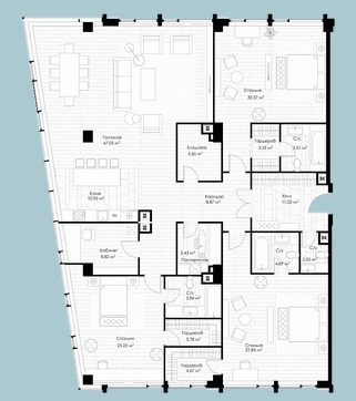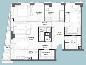 Всего застройщиком предлагается 182 апартамента, площади начинаются от 43 кв. метров, потолки высокие, 3.3 метра, визуально расширяющие внутреннее пространство. Планировки - «евро», с объединенной кухней-гостинной. Эксклюзивное предложение — видовой пентхаус площадью 236 кв. метров с собственной просторное террасой. Сдаются квартиры без внутренней отделки.